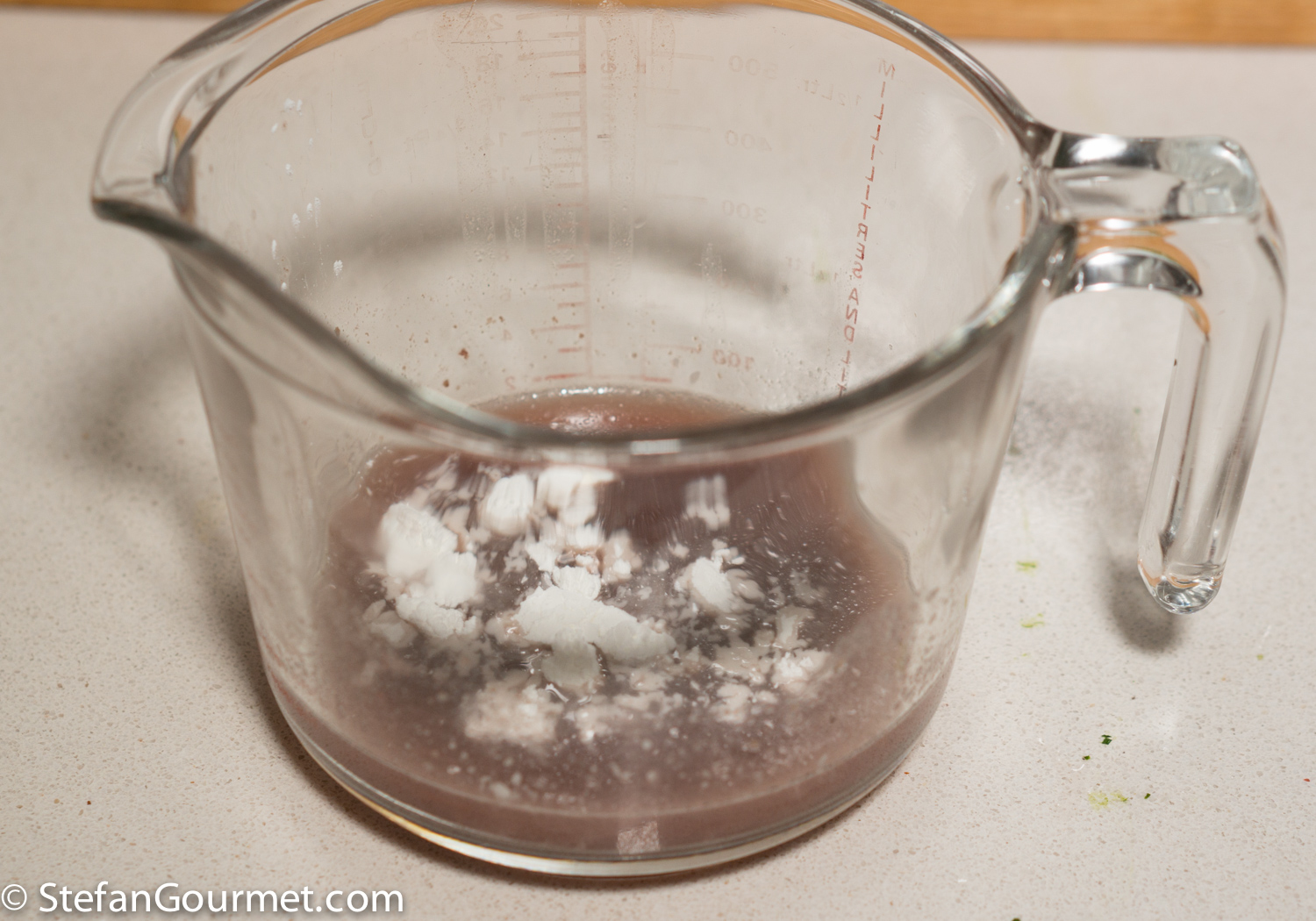 Add a teaspoon of corn starch to the reserved juices from cooking the beef. (If the juices are still too warm, dissolve them in two teaspoons of cold water first to prevent lumps.)