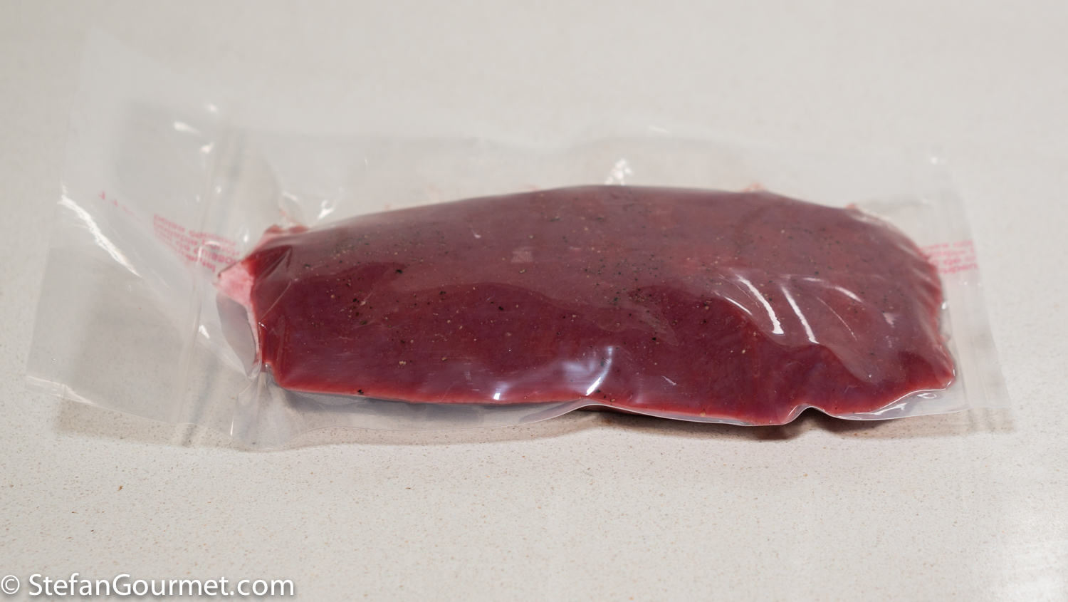 Season the venison with salt and freshly ground black pepper on both sides, and vacuum seal.