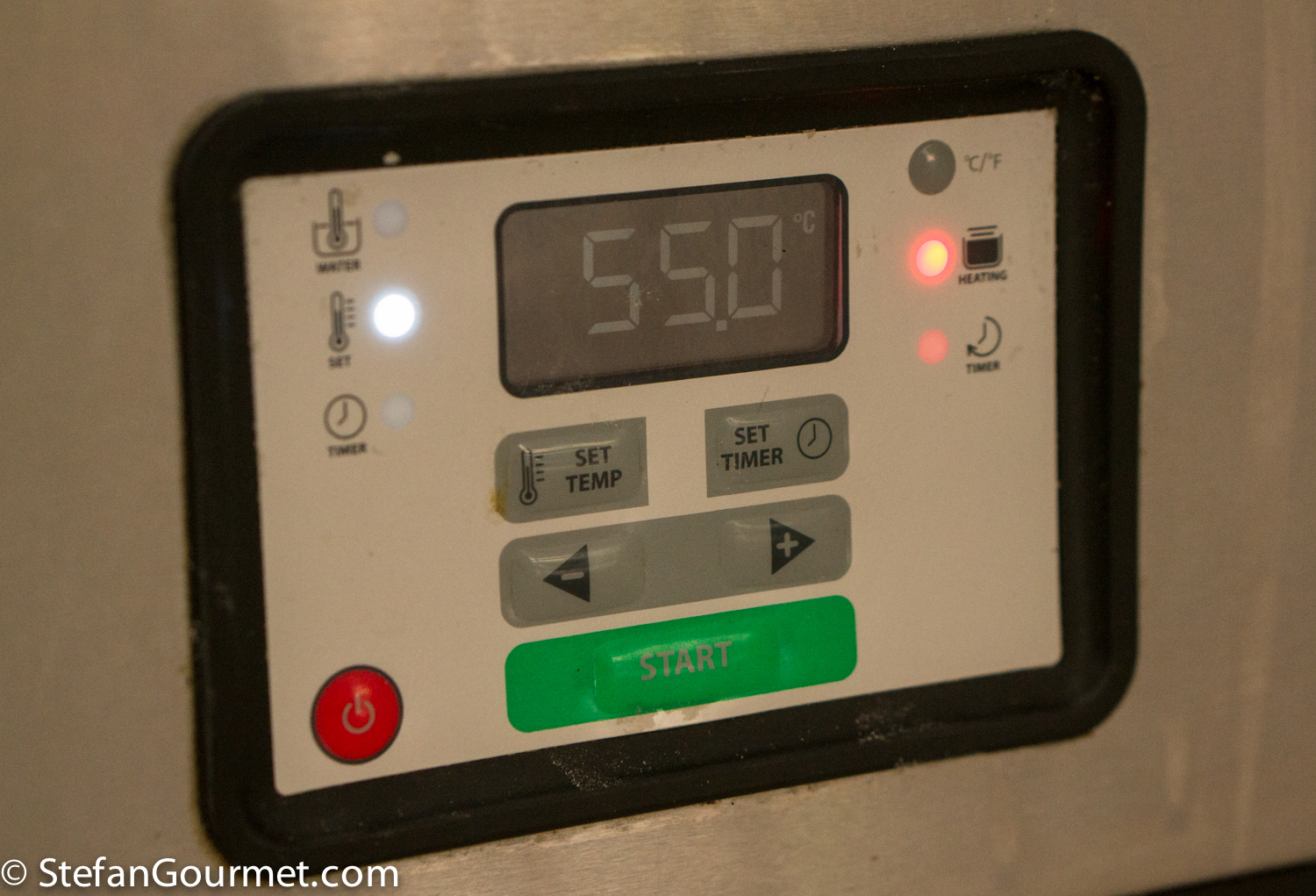 Then, increase the temperature to 49.5C/121F, and cook for another hour.