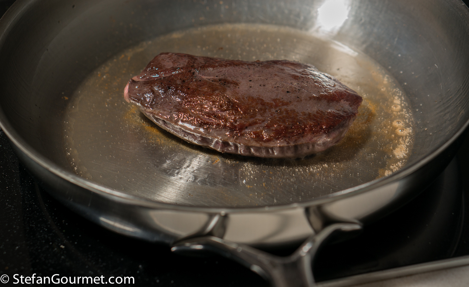 When the venison has been browned on both sides, wrap it in aluminum foil and allow to rest while you finish the sauce.