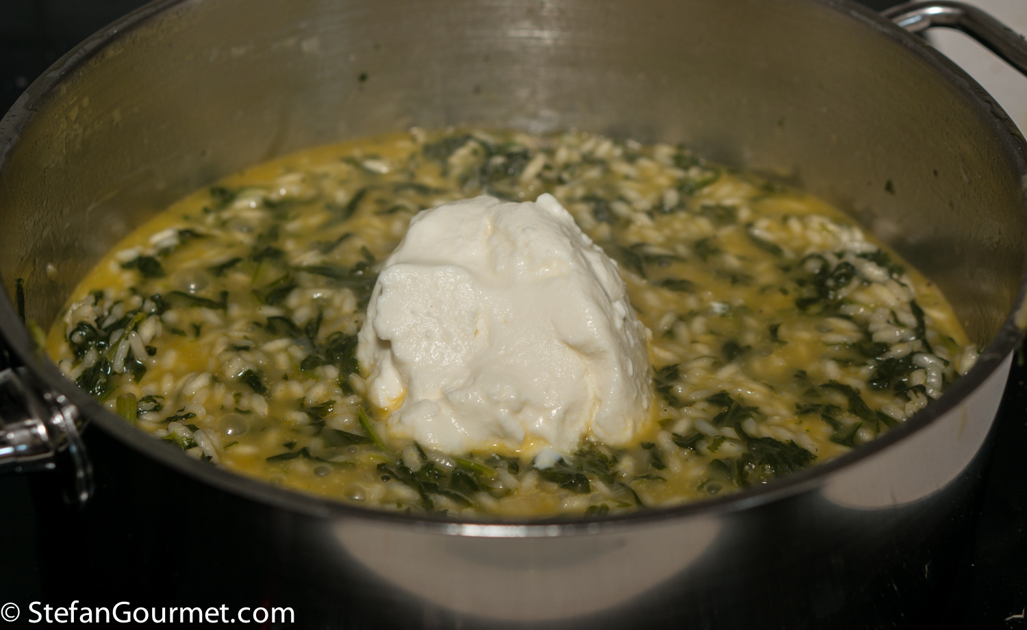 Like others, I’ve never tried to make risotto with ricotta, Stefan, but it does sound like the perfect marriage. Adding spinach — or was it the other way round? — would make for a very tasty dish, one that I’m going to try. Thanks!