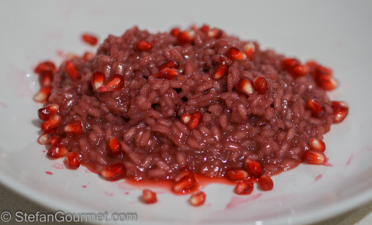 If you want something special for Christmas, how about pomegranate risotto. It certainly looks great and it also has a unique flavor. Add something green to make it look even more like Christmas.