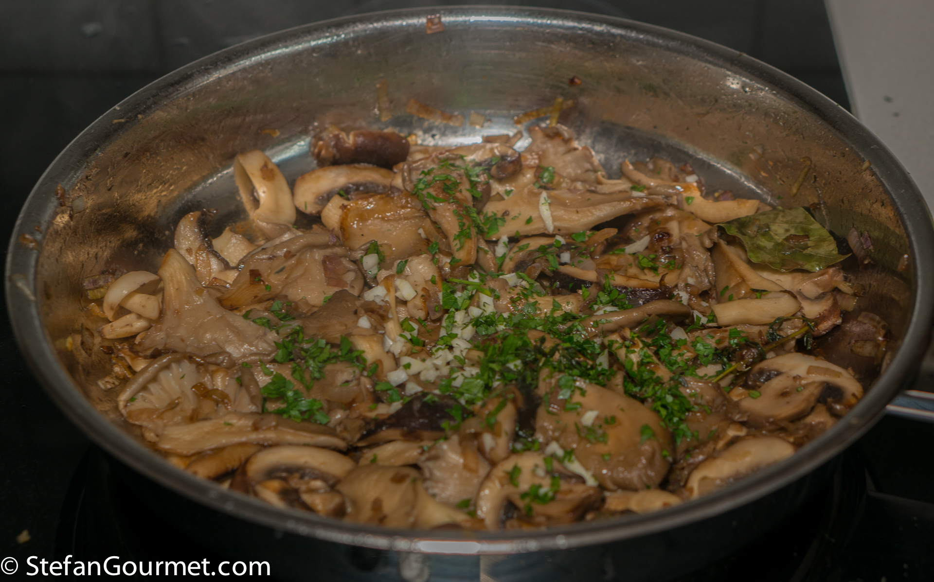 Add a tablespoon of minced parsley and a minced clove of garlic, and stir for a minute. Do not allow the garlic to brown (as it would turn bitter).