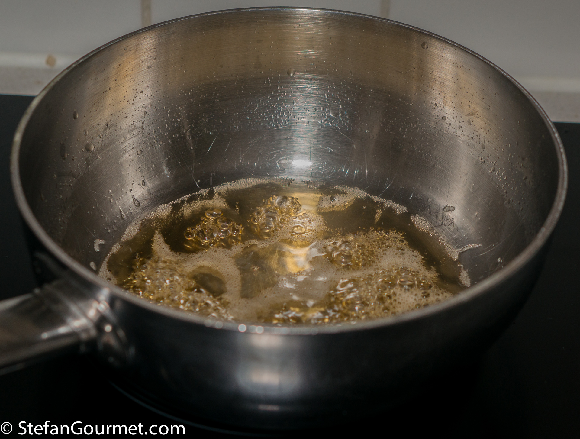 If you don’t use a thermometer you can keep going until it coats the back of a spoon, but using a thermometer is a lot easier and faster (because you don’t have to be as careful that it heats up too quickly because the thermometer will tell you when it’s time to turn off the heat).