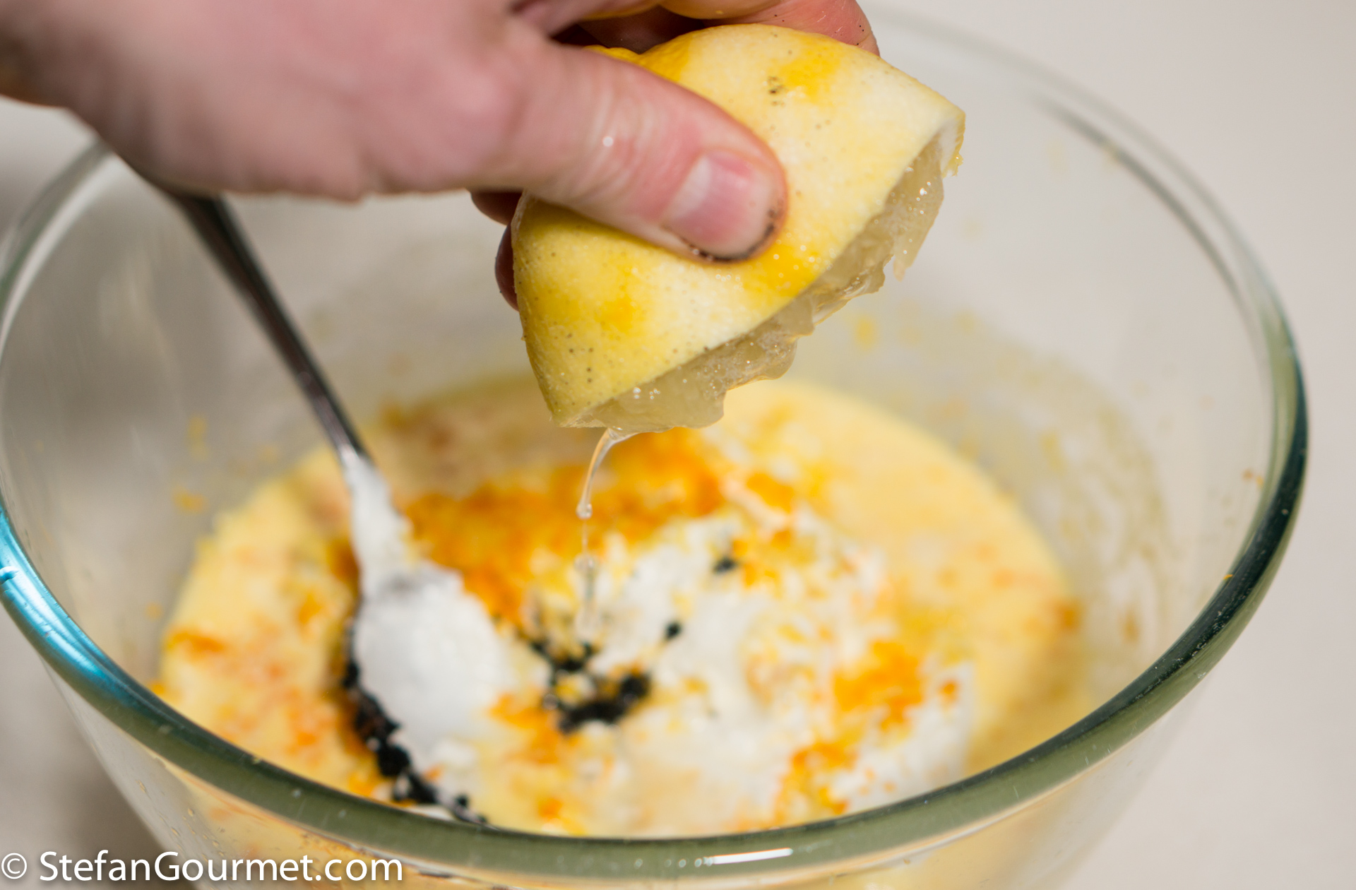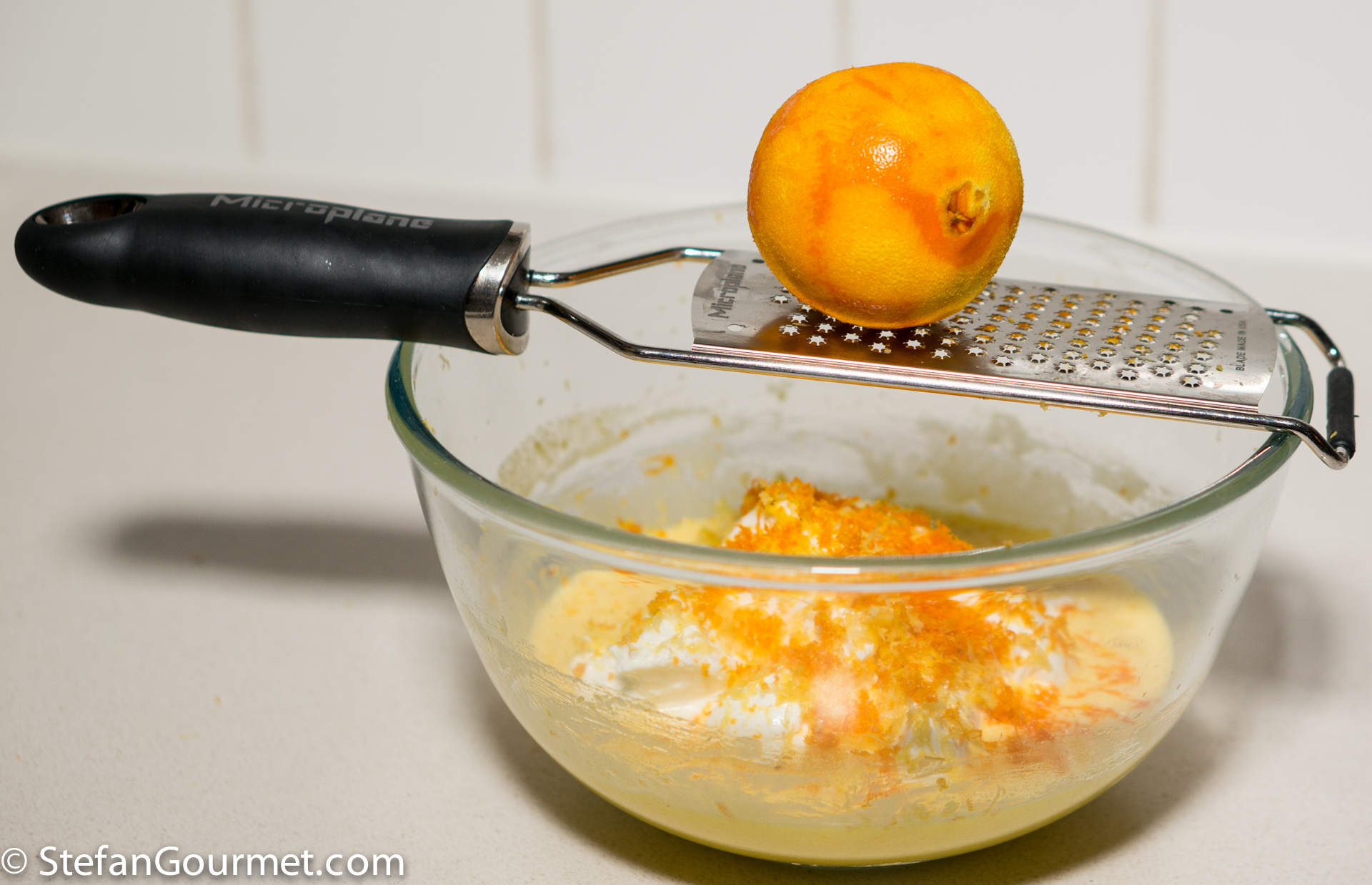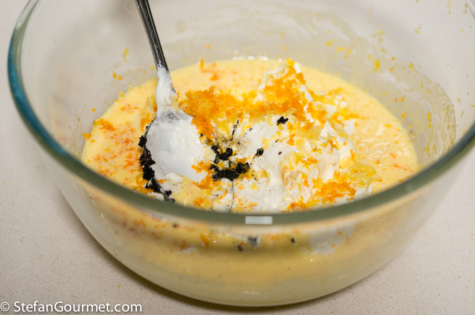 Add 350 grams of yogurt and the grated zest of a lemon.