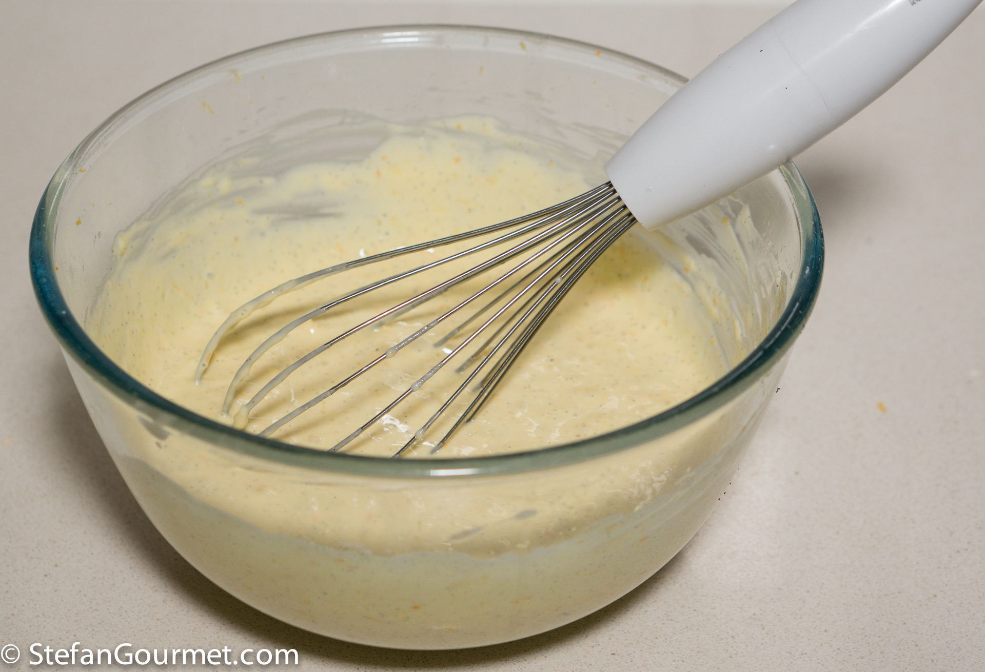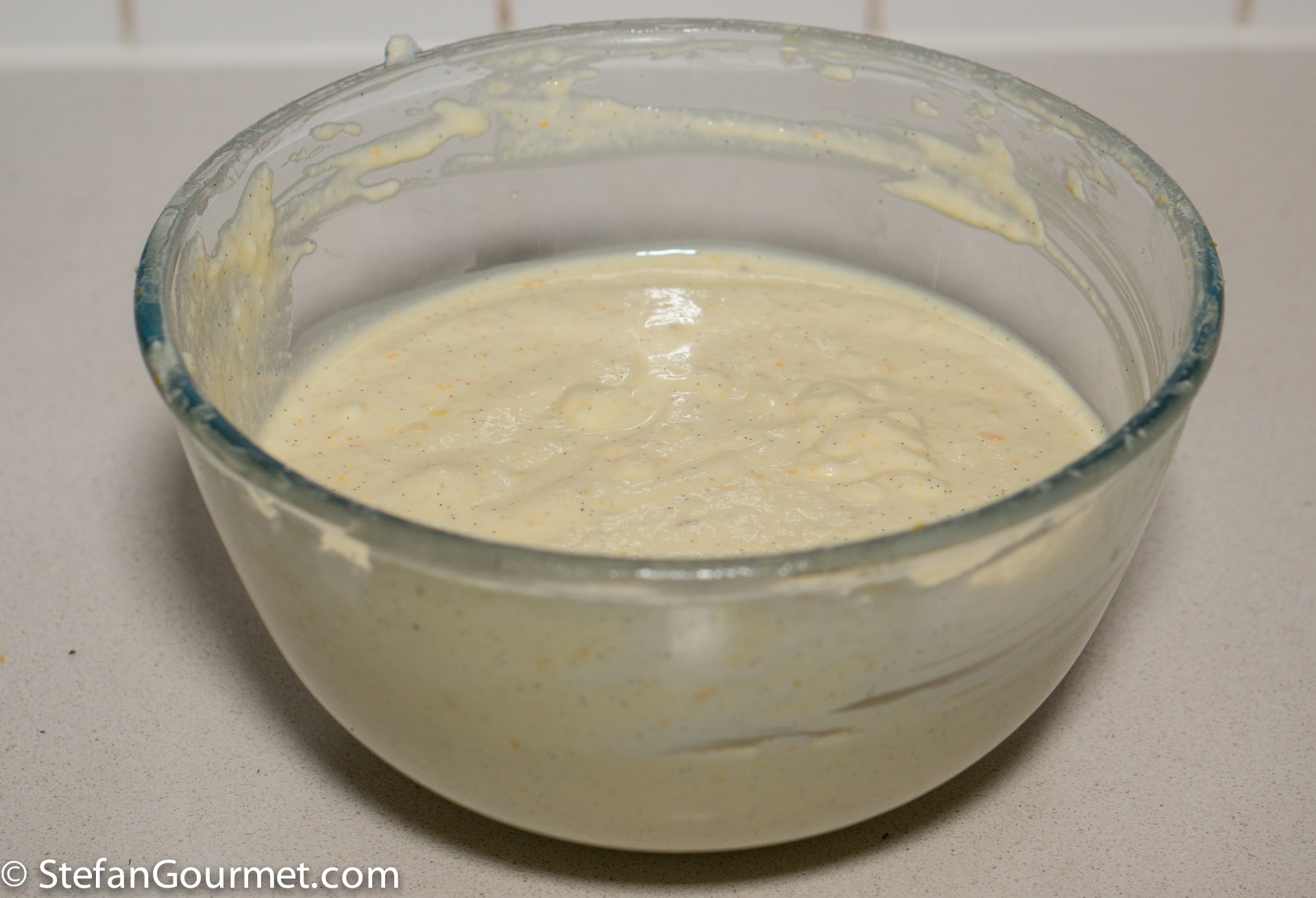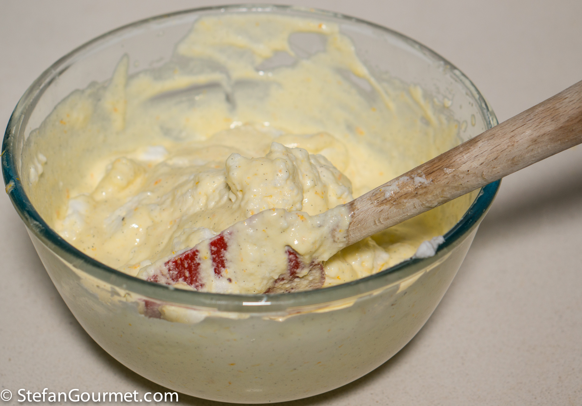 de joghurt wordt er nooit in gestopt. Misschien na het eigeel slaan ?