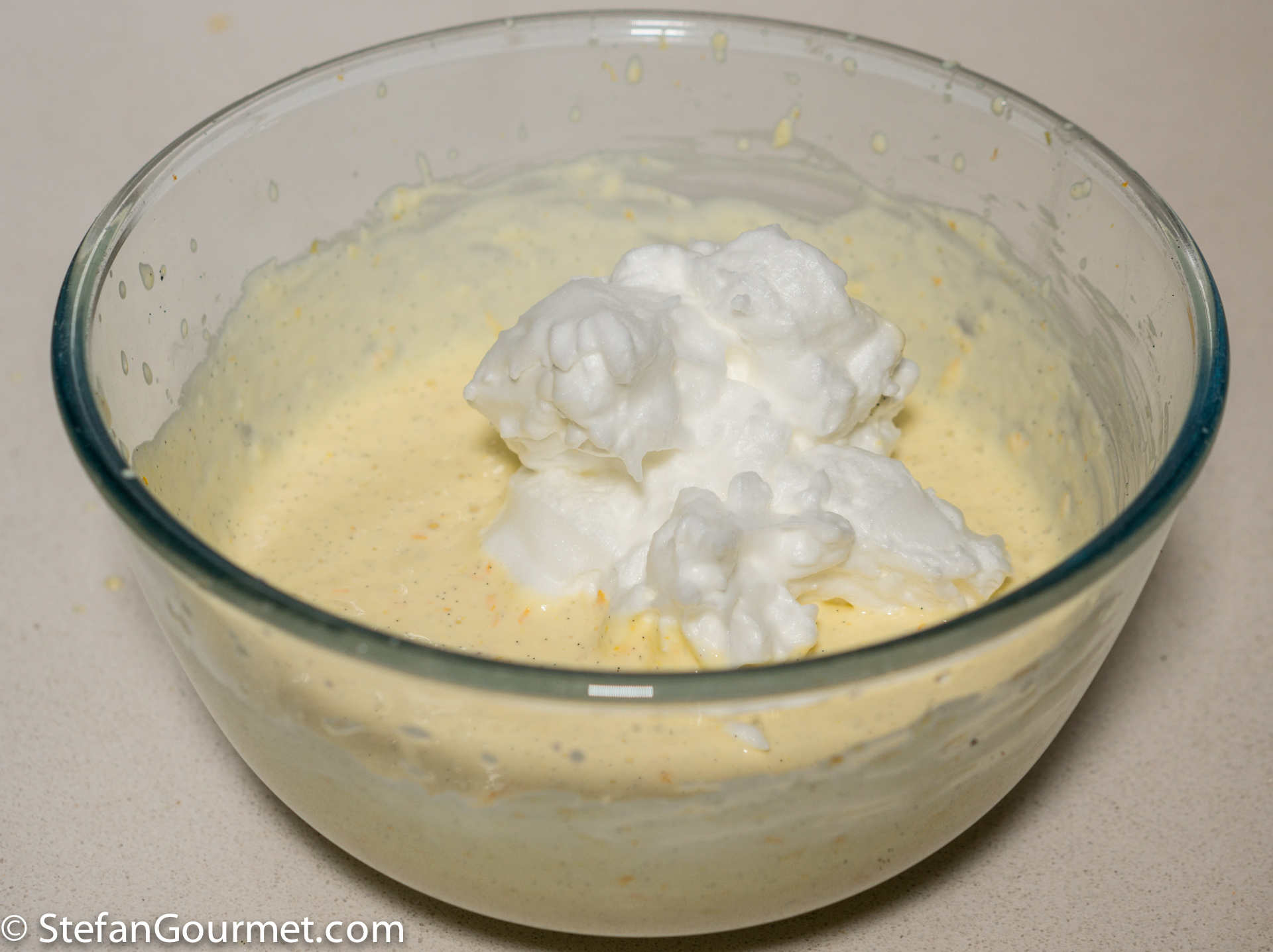 …until the egg whites have been absorbed by the batter. By folding gently, you will keep as much air in the batter as possible.