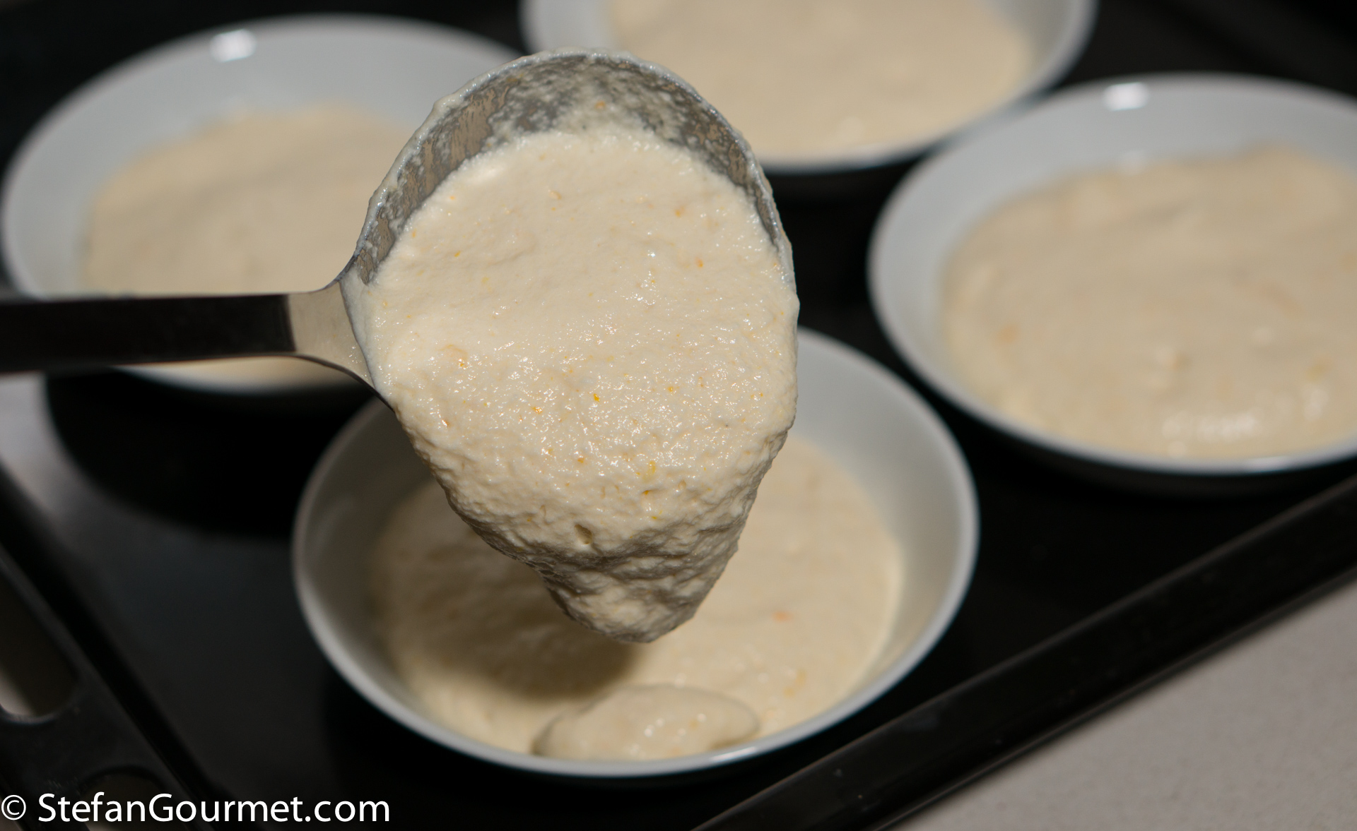 If using ramekins, pour the batter into the ramekins. As you will be serving it in the ramekins, there is no need to butter them.