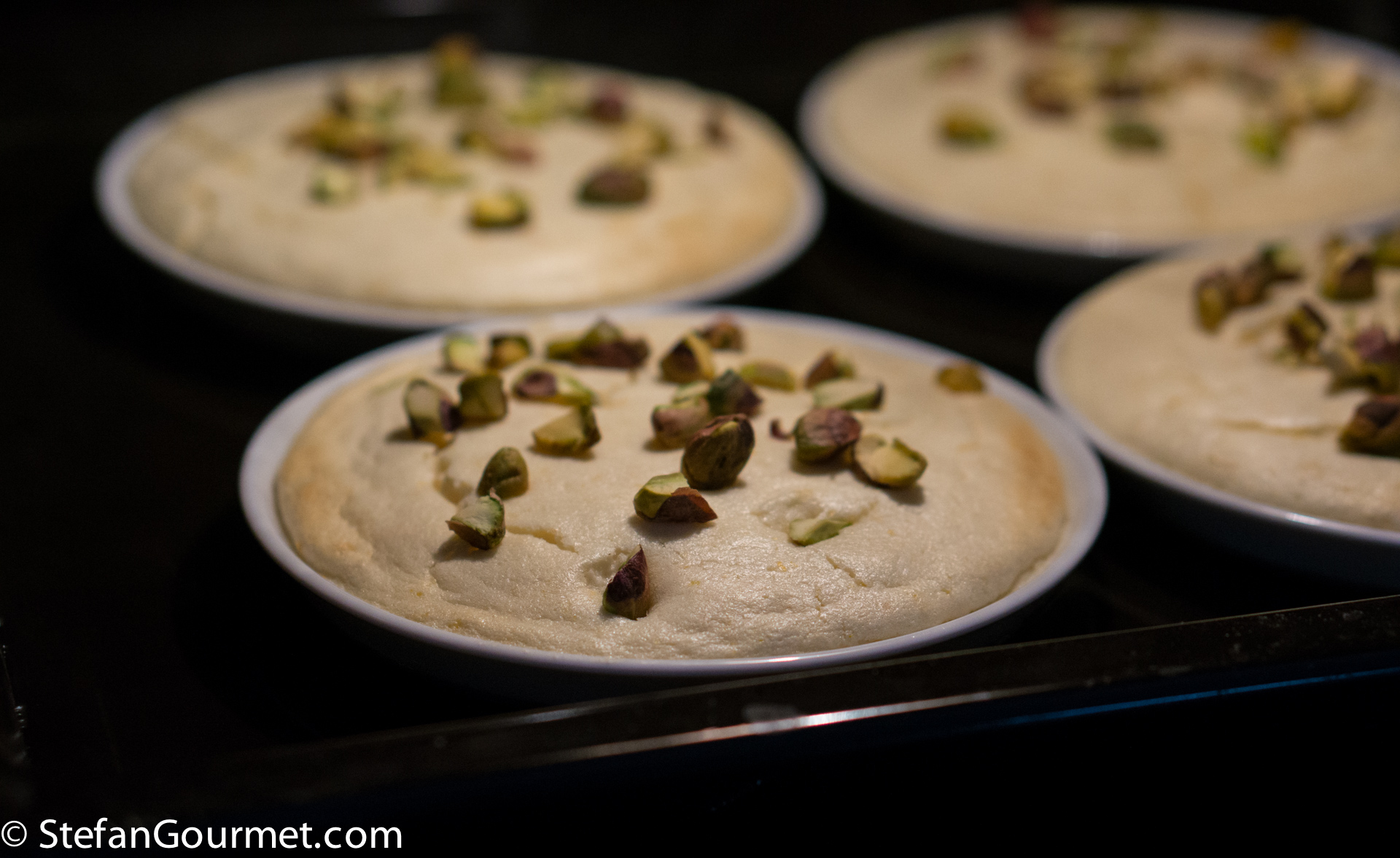 After 20 minutes, sprinkle the top of the cake(s) with the chopped pistachios.
