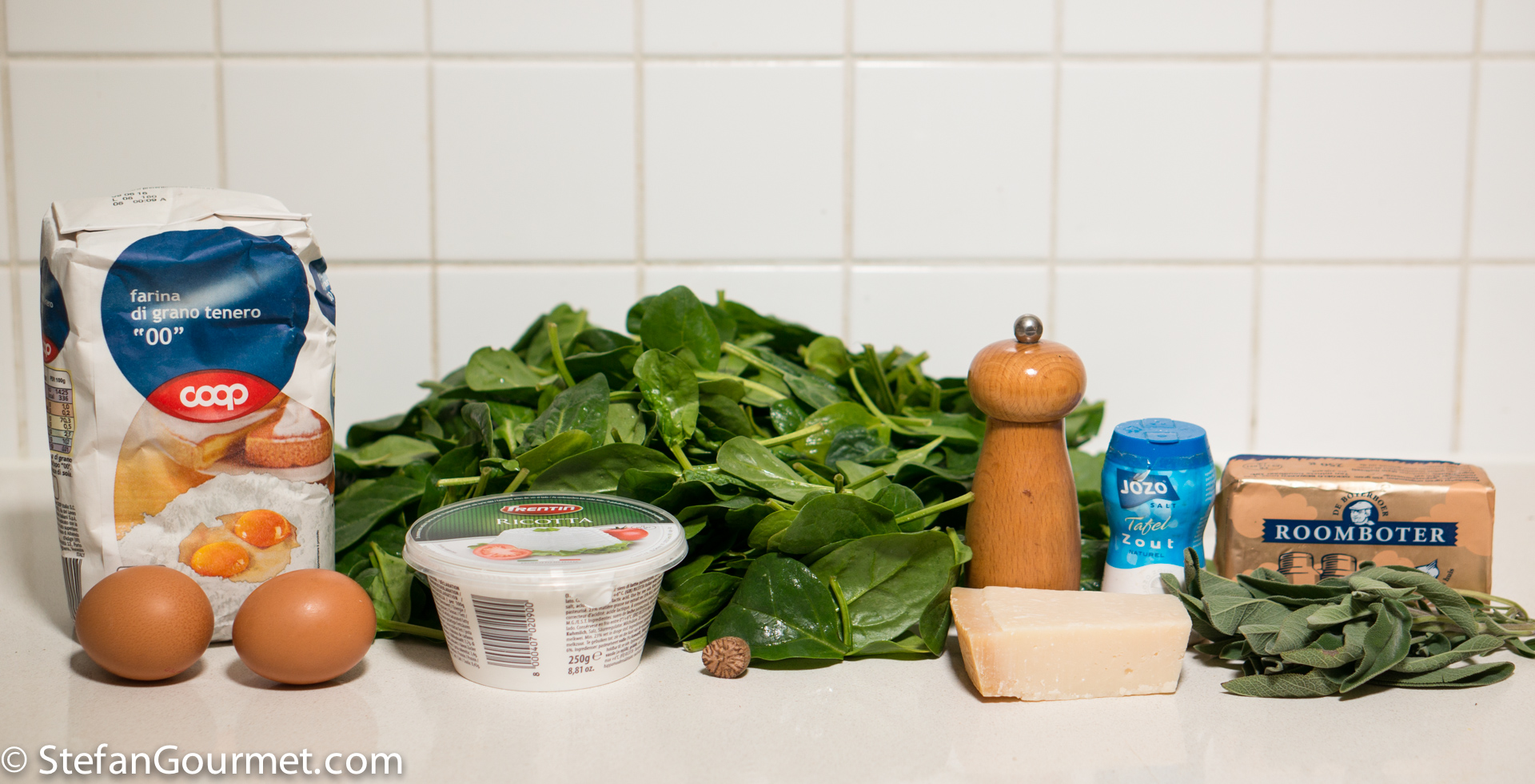 Today I present the most classic ravioli of them all, stuffed with ricotta and spinach, and served with butter and sage. They are very simple, but as often the cases that doesn’t make them any less good. The secret is to strike just the right balance between spinach, ricotta, and parmigiano in the filling, and to season the filling abundantly.