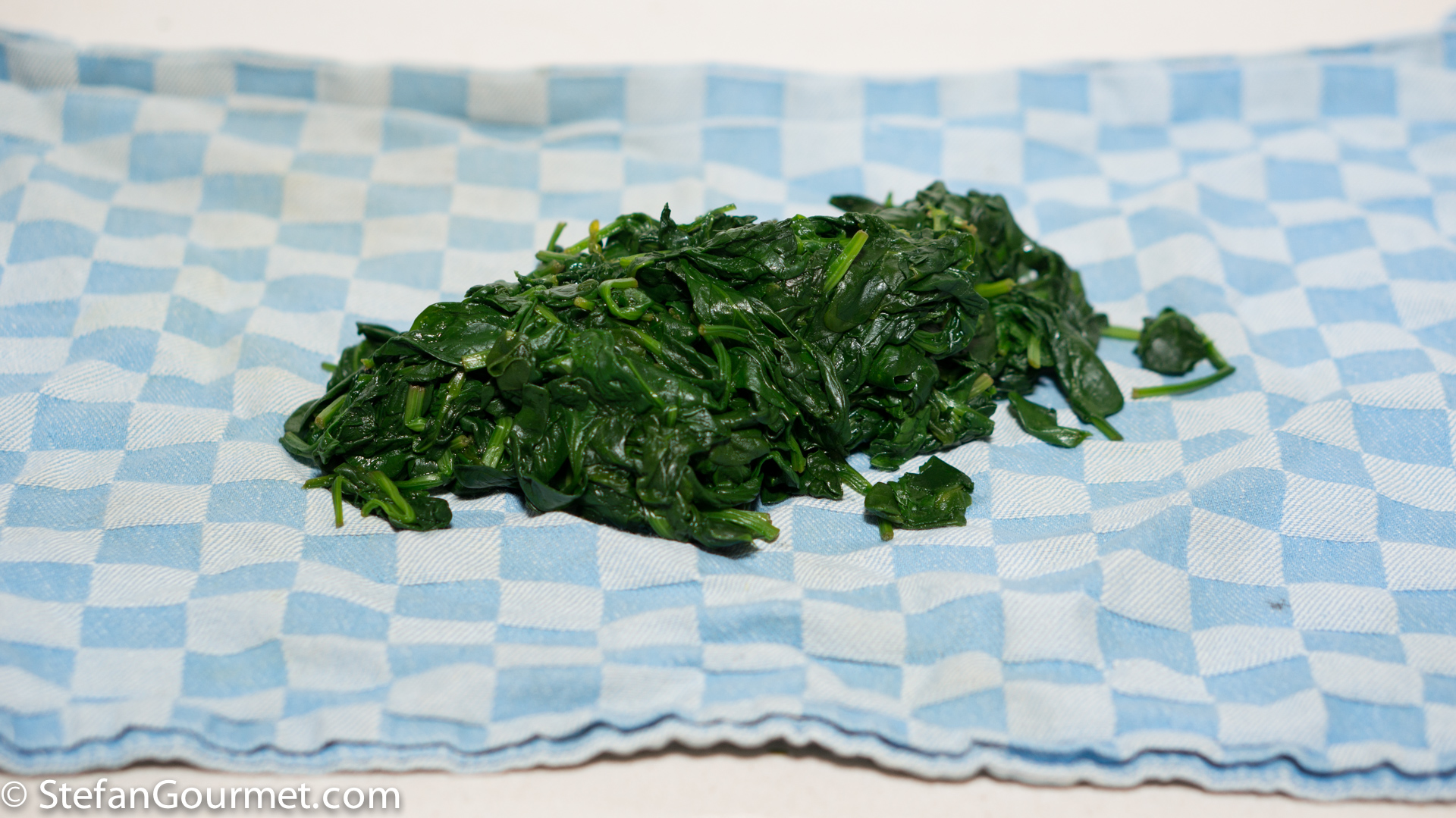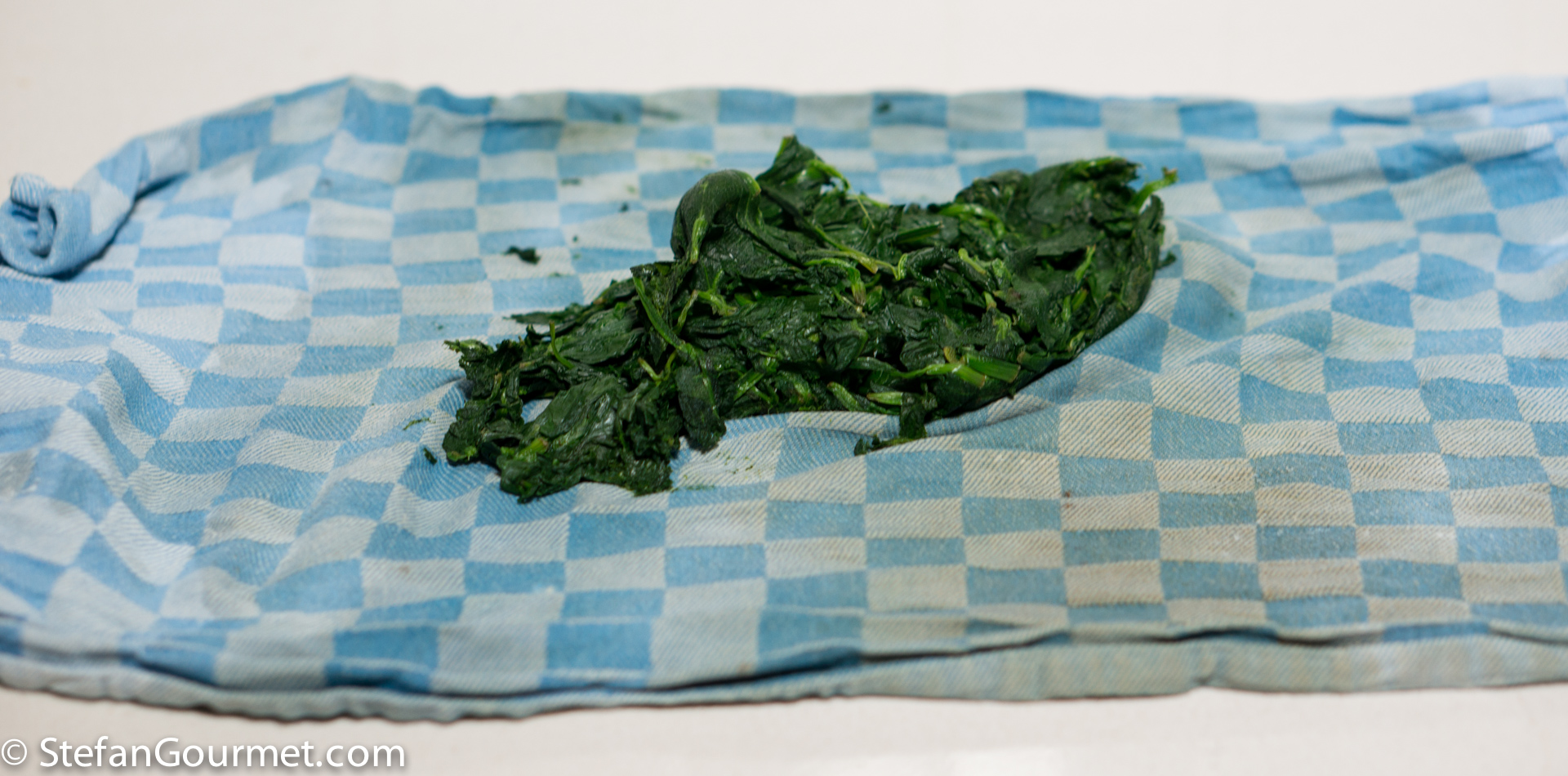 Drain the spinach, then put it on an old (but clean) tea towel…