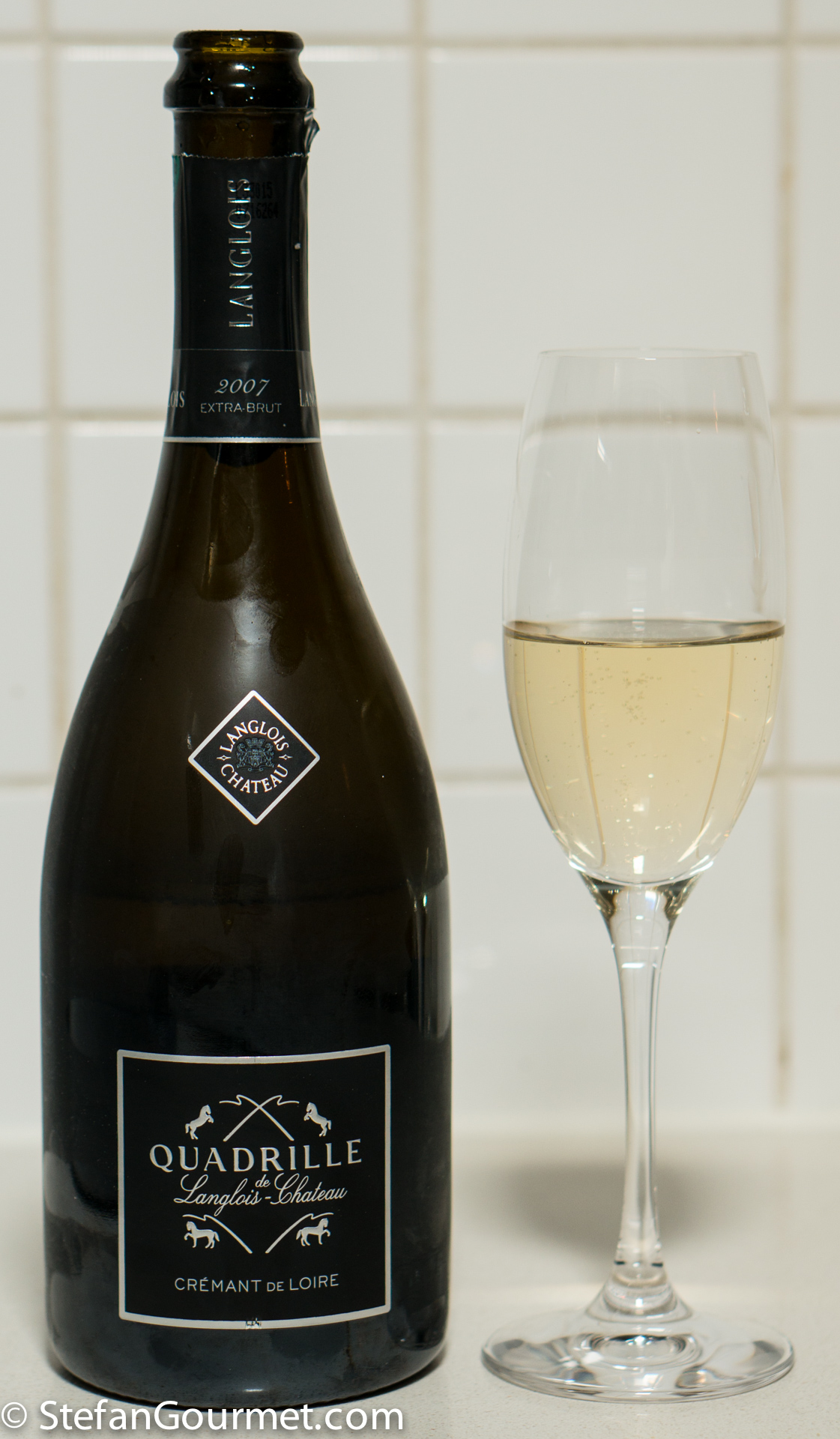 Artichokes are notoriously difficult to pair with wine, as they often ‘kill’ the wine. I’ve had good results with sparkling wines, like this Crémant de Loire. Like cava and other crémants, it is made using the same method as Champagne, but the climate is better and the prices are lower than for real Champagne. Quadrille is made using four grapes: chenin blanc, cabernet franc, chardonnay, and pinot noir, and it has been aged on the lees after the second fermentation in the bottle for 8 years. This gives this sparkling wine great complexity and body.
