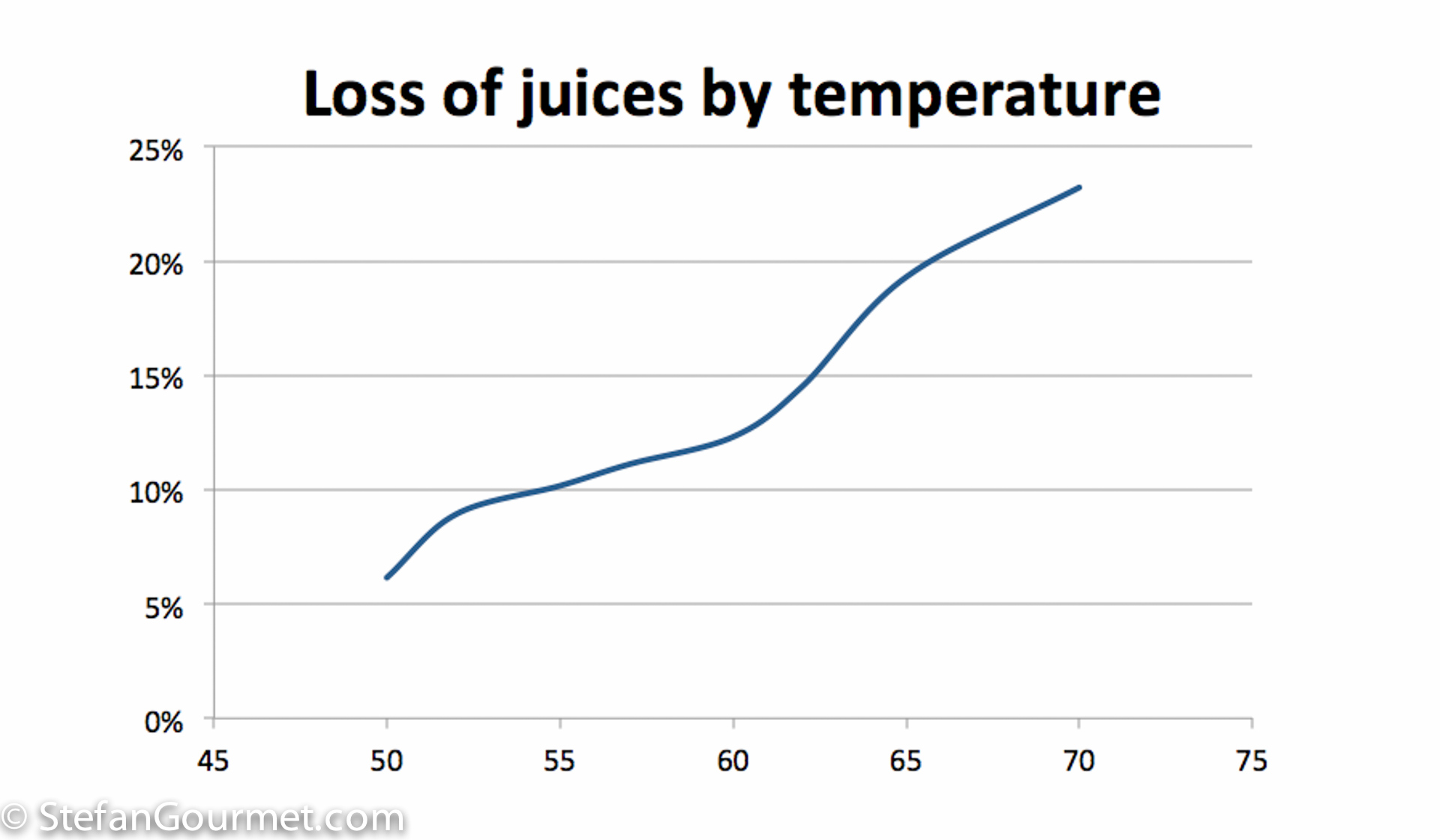 1. More juices will be squeezed out of the meat, so the lower the temperature, the more juicy