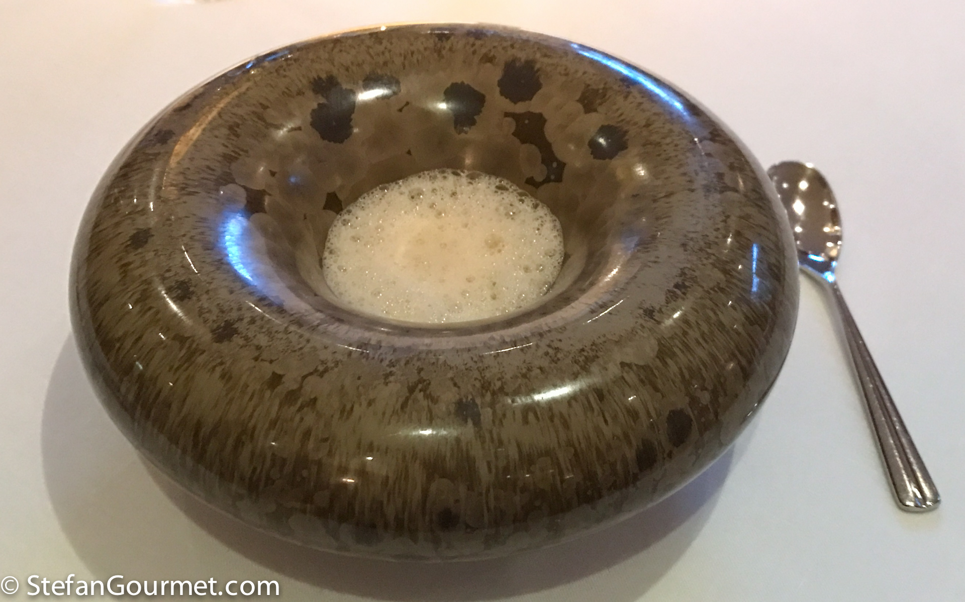 We started with a set of amuse bouche. This one included oyster and coffee, an unusual combination but surprising and delicious.