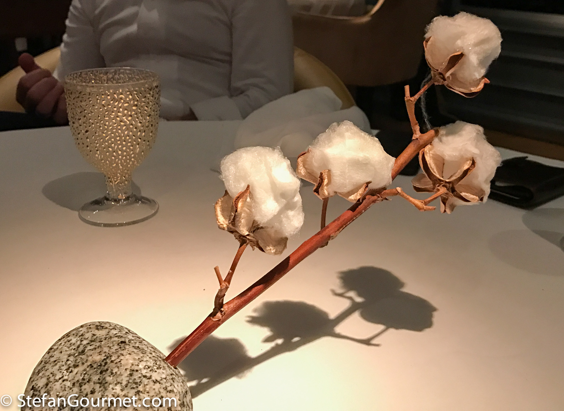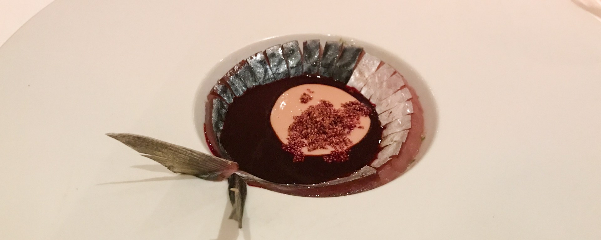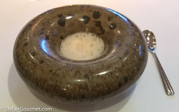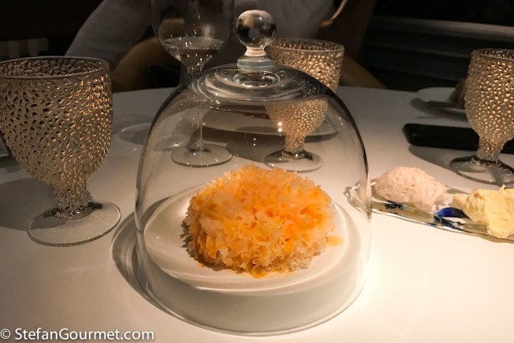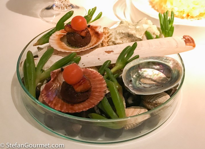 This ‘object’ had been sitting under a dome in the center of our table during the entire dinner. The waiter came by a couple of times to pour buckthorn juice over it. Then before the palate cleanser are was served, it was removed from the table.