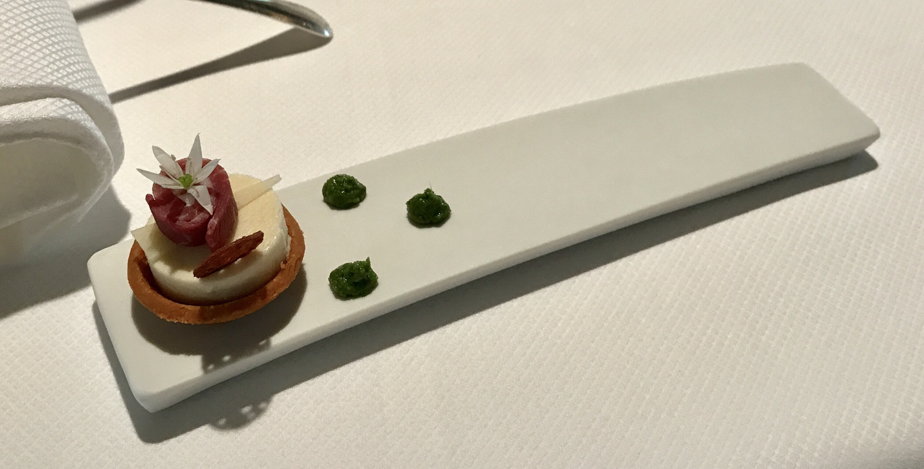 Charolais beef fillet, injected with lardo, with onion and blueberry vinegar jus. The beef was very tender. It didn’t really need the lardo, but it was nice all the same. The onion and jus also very good. 9/10