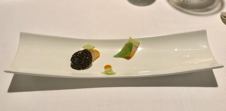 Next came the chef’s signature dish: foie gras with a warm balsamic emulsion. This was great, as the dish had great balance with a very good pairing between the sweetness and the acidity of the balsamic with the foie. 9/10