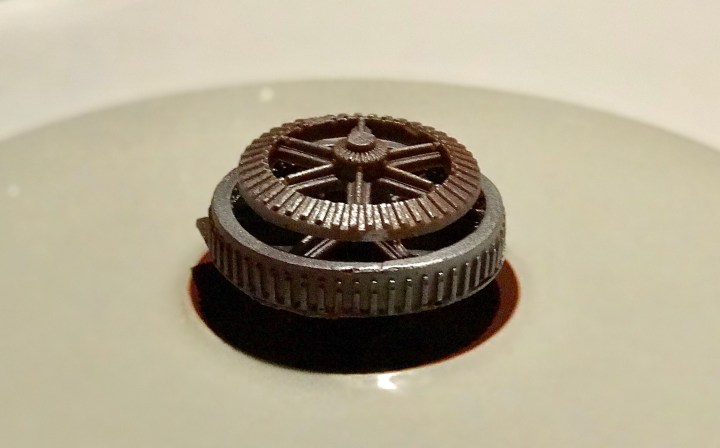 The first dessert did not only look beautiful, but it had also great taste. It was chocolate shaped as the cogwheels of le Moulin de Martorey combined with passion fruit. 9/10