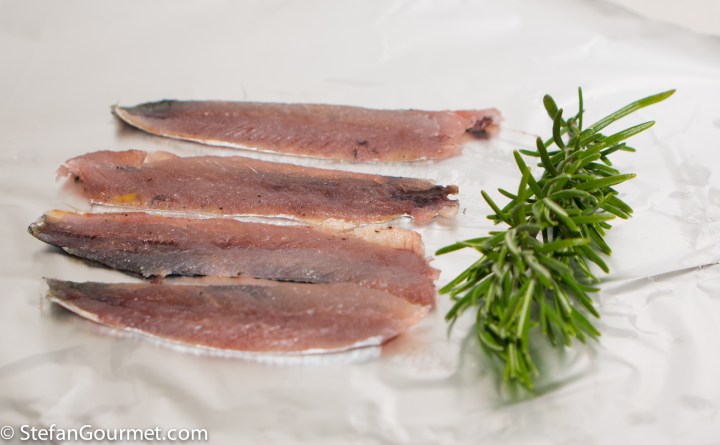 Another fun part is that it only takes about 10 minutes to do the actual smoking and it looks quite spectacular, so you can do it in front of your duly impressed guests. The sardines are briefly cured in salt beforehand, and then smoked by enclosing them under a bowl (a glass bowl is best for the visual effect) together with a smoldering branch of rosemary. The result is delicious cold smoked sardines with an elegant smoky flavor and a nice firm texture. Here’s how you can make them at home, too.