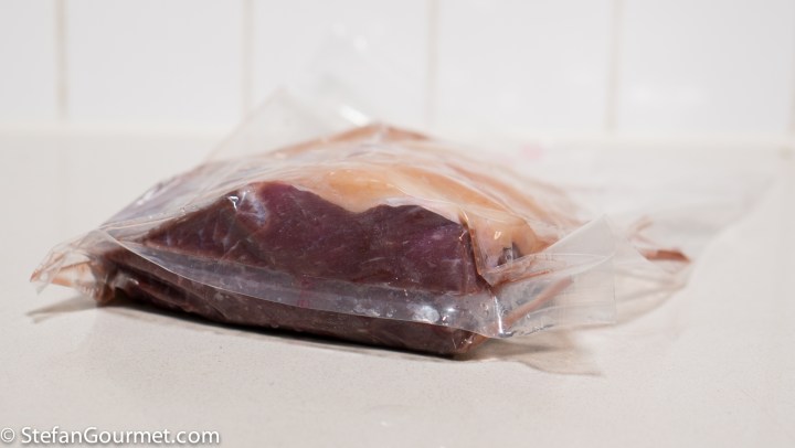I then ‘warm aged it’ sous-vide. First for 1 hour at 39.5C/103F, then 1 hour at 49.5C/121F. Depending on the quality of the meat, you can now go straight to the smoking step, or decide to cook the meat sous-vide to tenderize it more. I cooked the picanha sous-vide for 6 hours at 53C/127F.