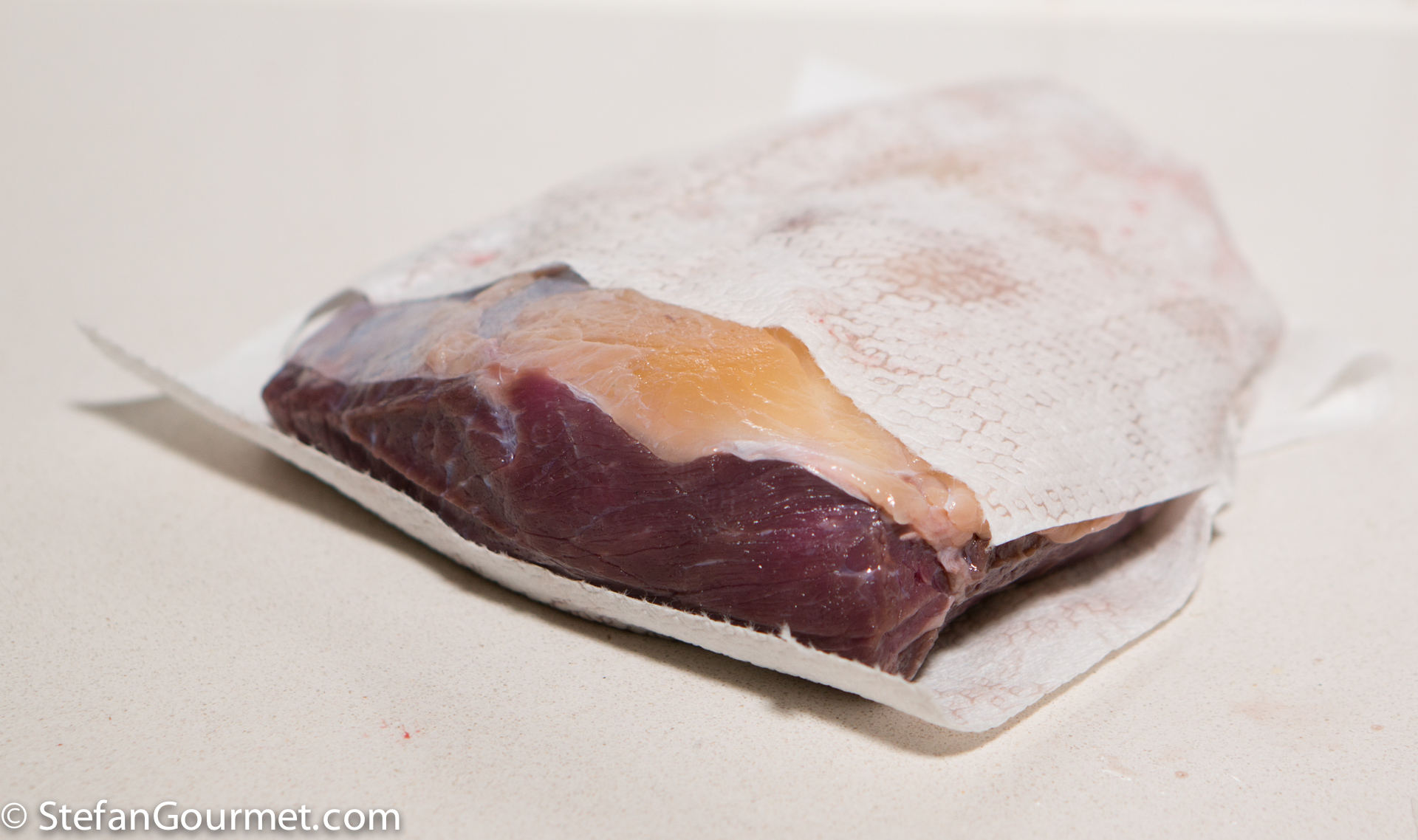 Then I took the meat out of the bag and patted it dry with paper towels.