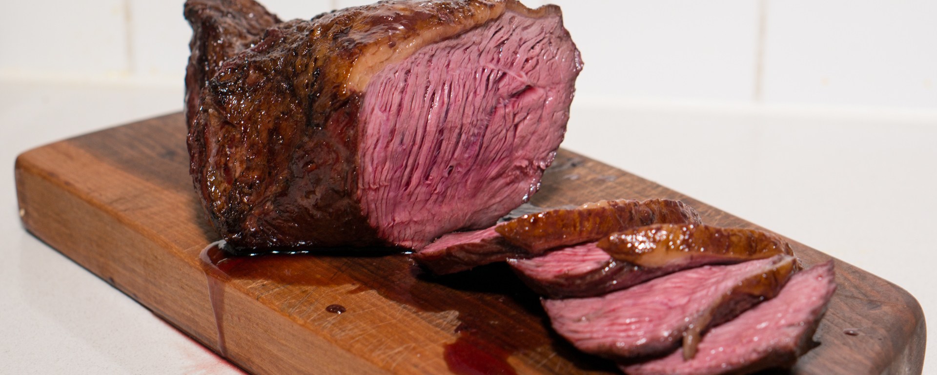 …so it will be cooked evenly on all sides. It is done when the core temperature is 55C/131F (medium rare). This will take about 15 minutes, depending on the temperature inside your grill.