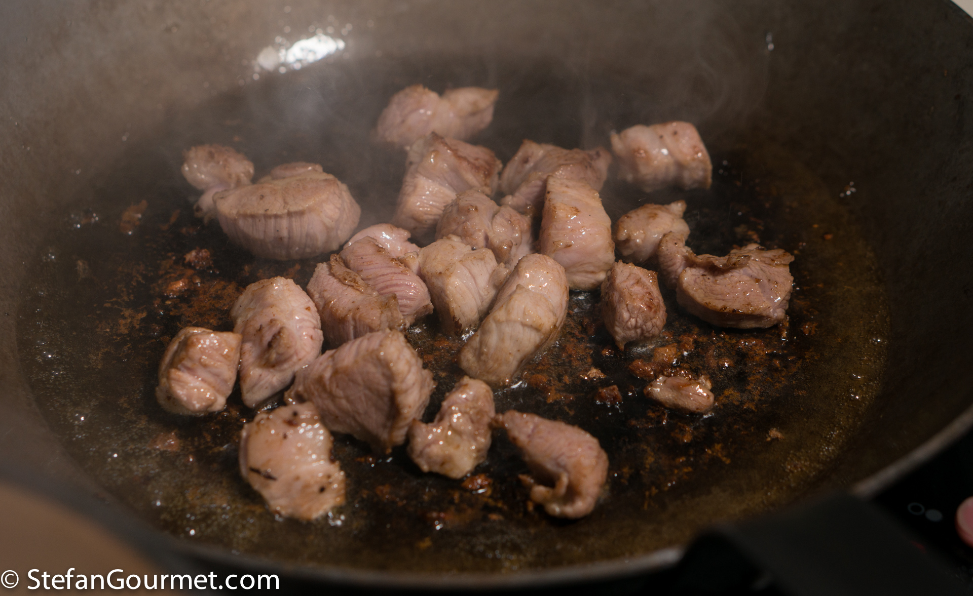 After 15 minutes, add the pork…