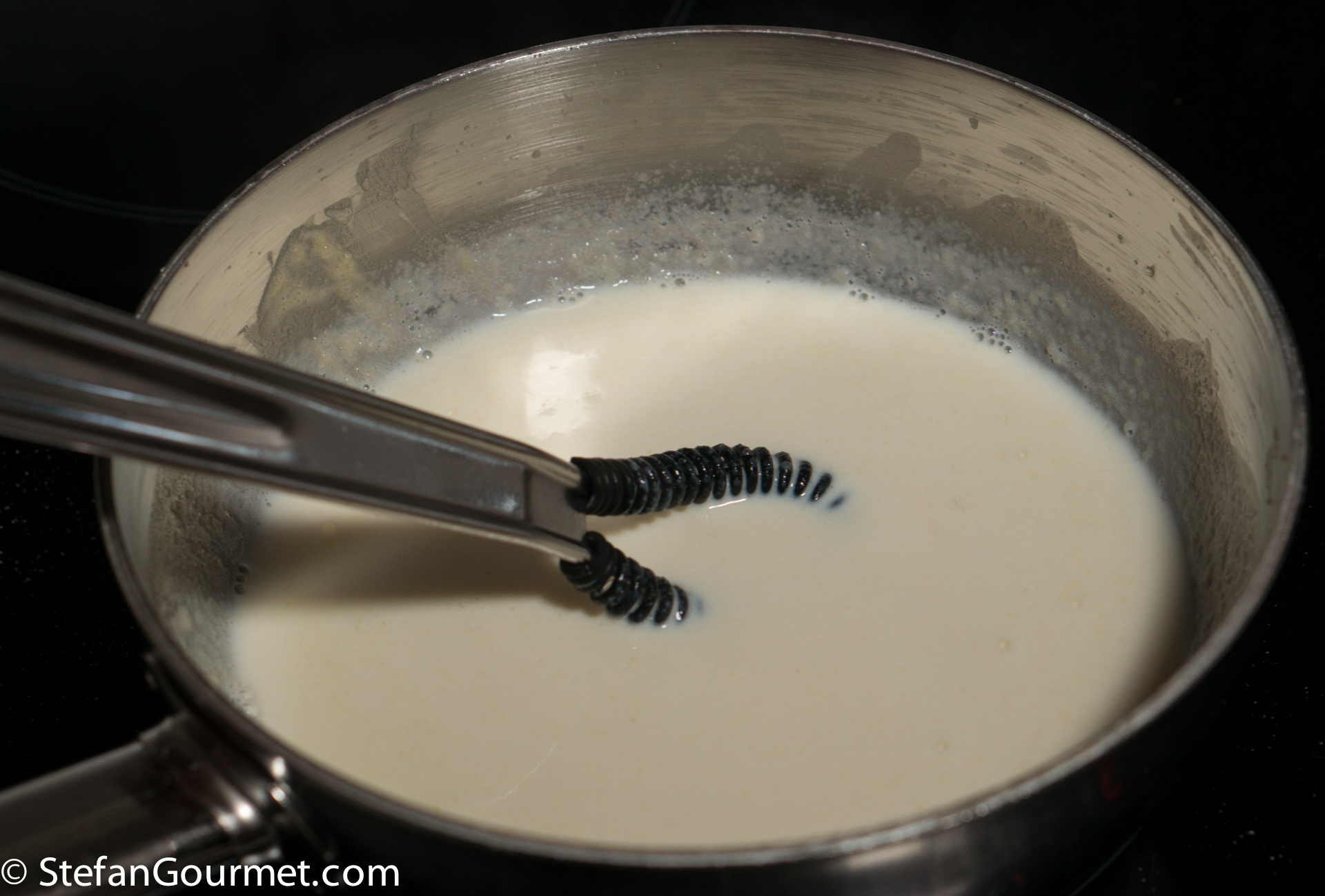 Once you’ve added all of the milk, whisk energetically until there are no more lumps. This should be very easy.