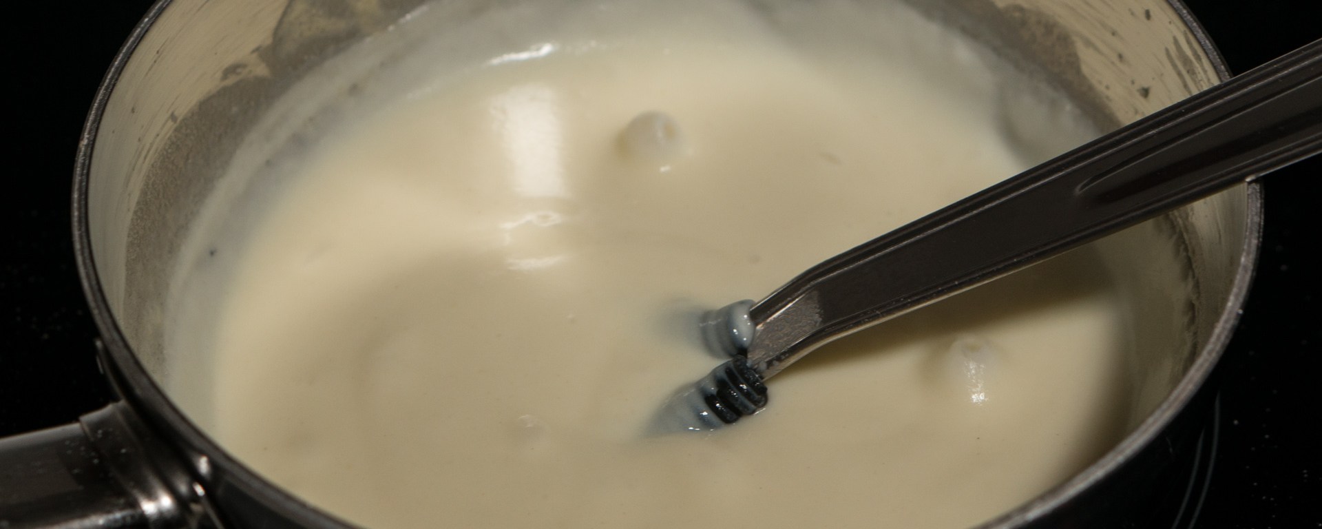 White sauce is known as béchamel in France or besciamella in Italy and is an important basic sauce that is used in many dishes like lasagna. White sauce is made using only three ingredients: milk, butter, and flour. Most recipes will tell you to add the milk slowly while stirring. This is in fact a difficult method with a high risk of lumps and it will take more time. In this post I will teach you a much easier method.