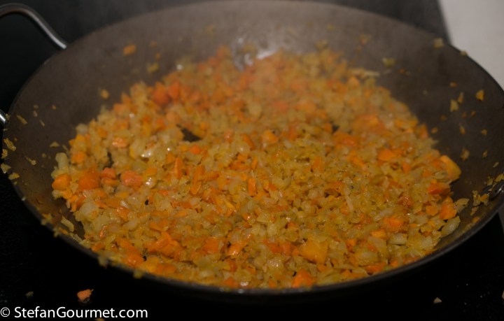 Stir over medium heat until the vegetables start to color, 5 to 10 minutes.