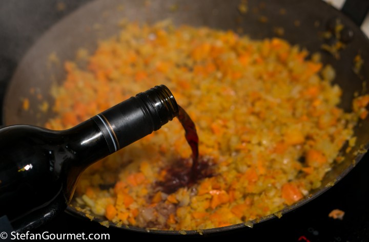 Add half a bottle of red wine.