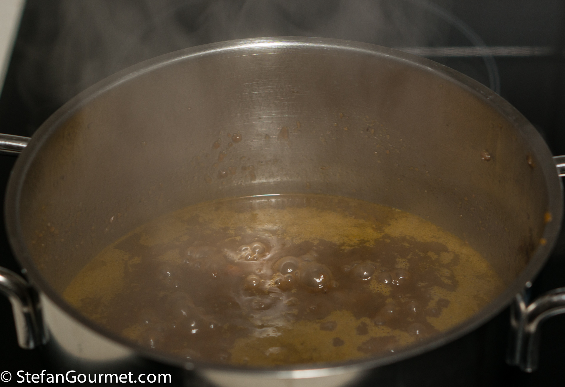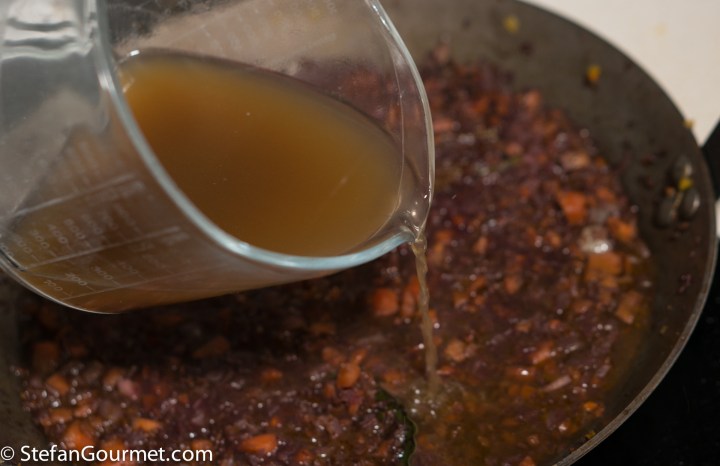 Add the venison stock. Bring to a boil, then reduce the heat and allow to simmer…