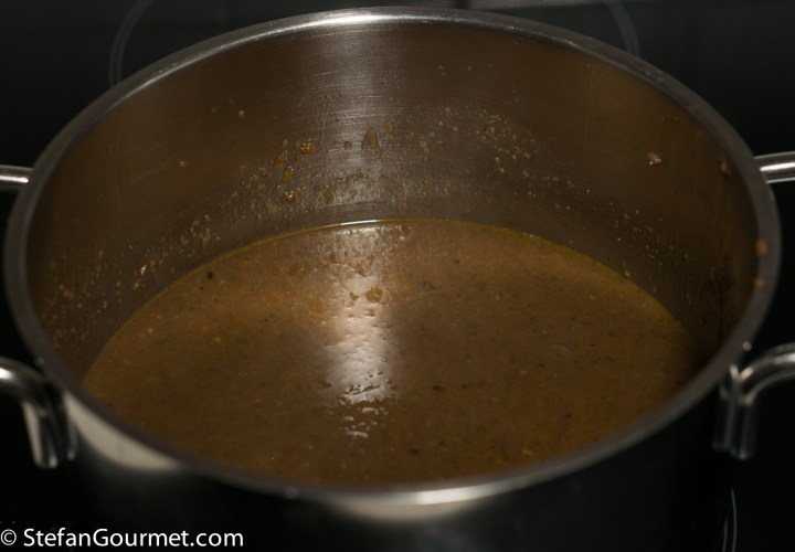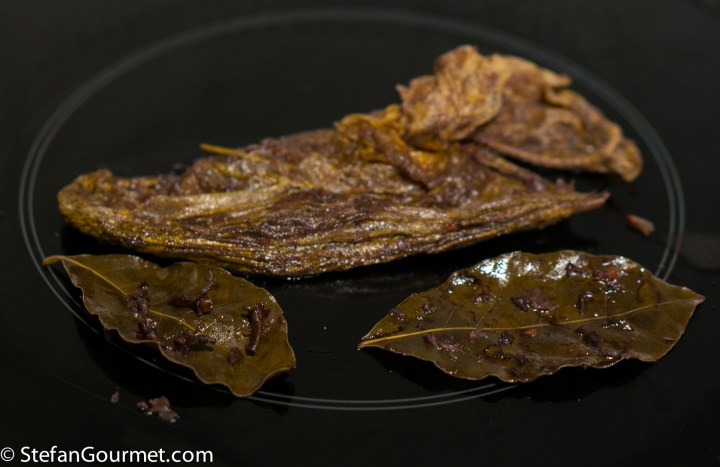 Now remove the bay leaves, rosemary, and cloves.