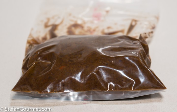 • Or use a ziploc bag and the water displacement method to seal meat and sauce together with as little air as possible. For this method the meat and sauce can still be warm.