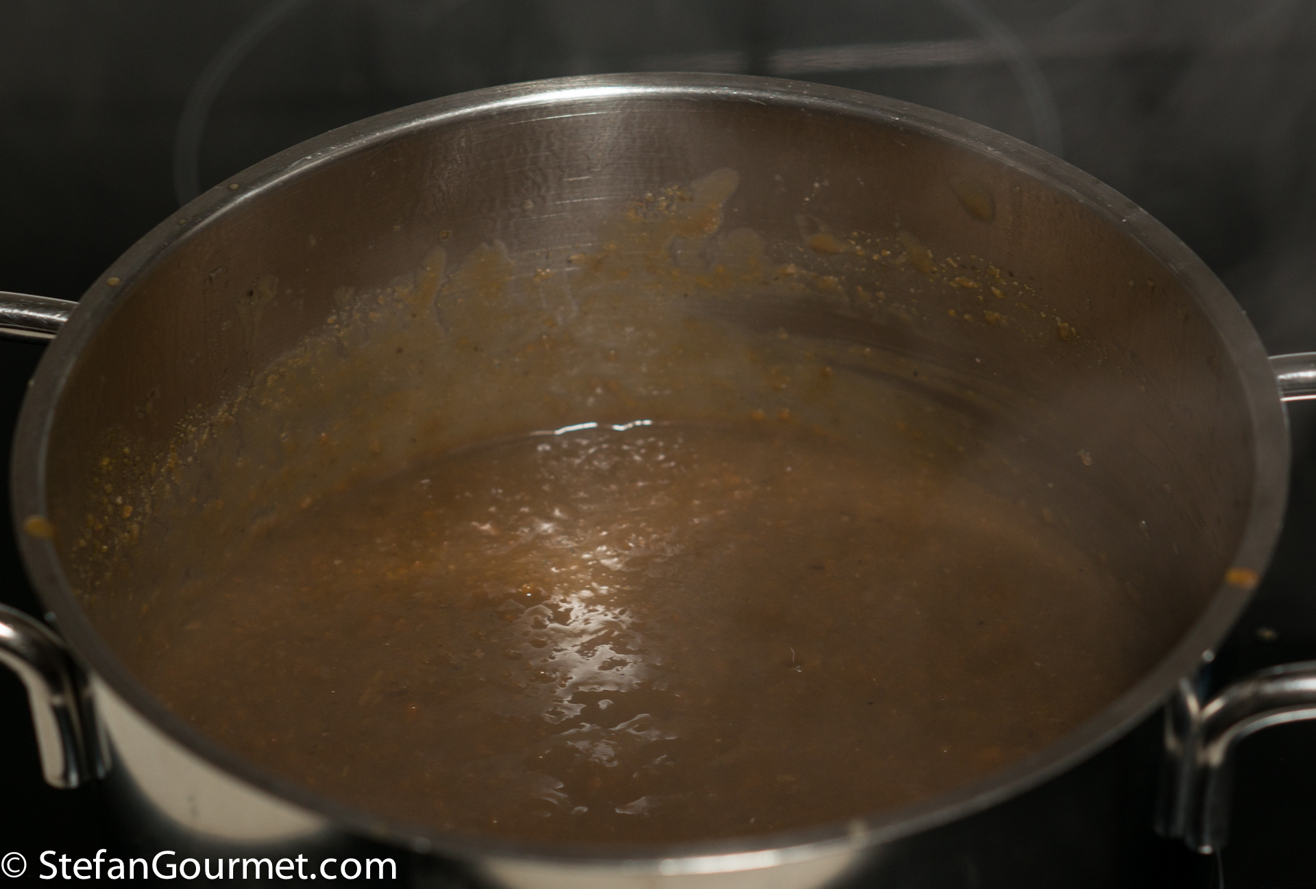 Stir until the sauce has thickened. You may have to add more cornstarch slurry to get it to the right thickness.