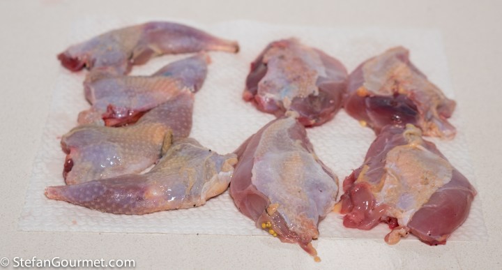 Check for any lead bullets or feathers that have been shot into the meat, and remove them.