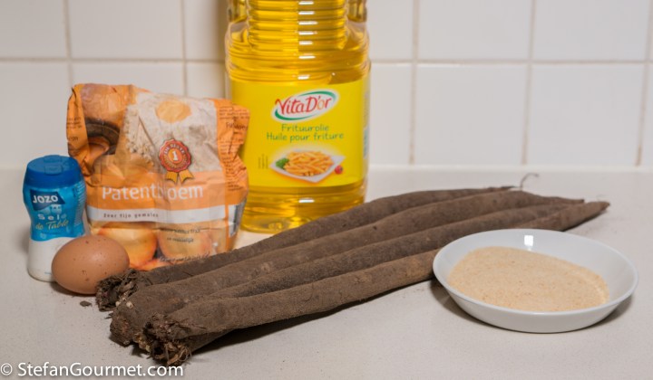 The salsify can be breaded in advance, but deep fry them just before serving. Allow the breading to dry on all sides by turning the salsify at least once.