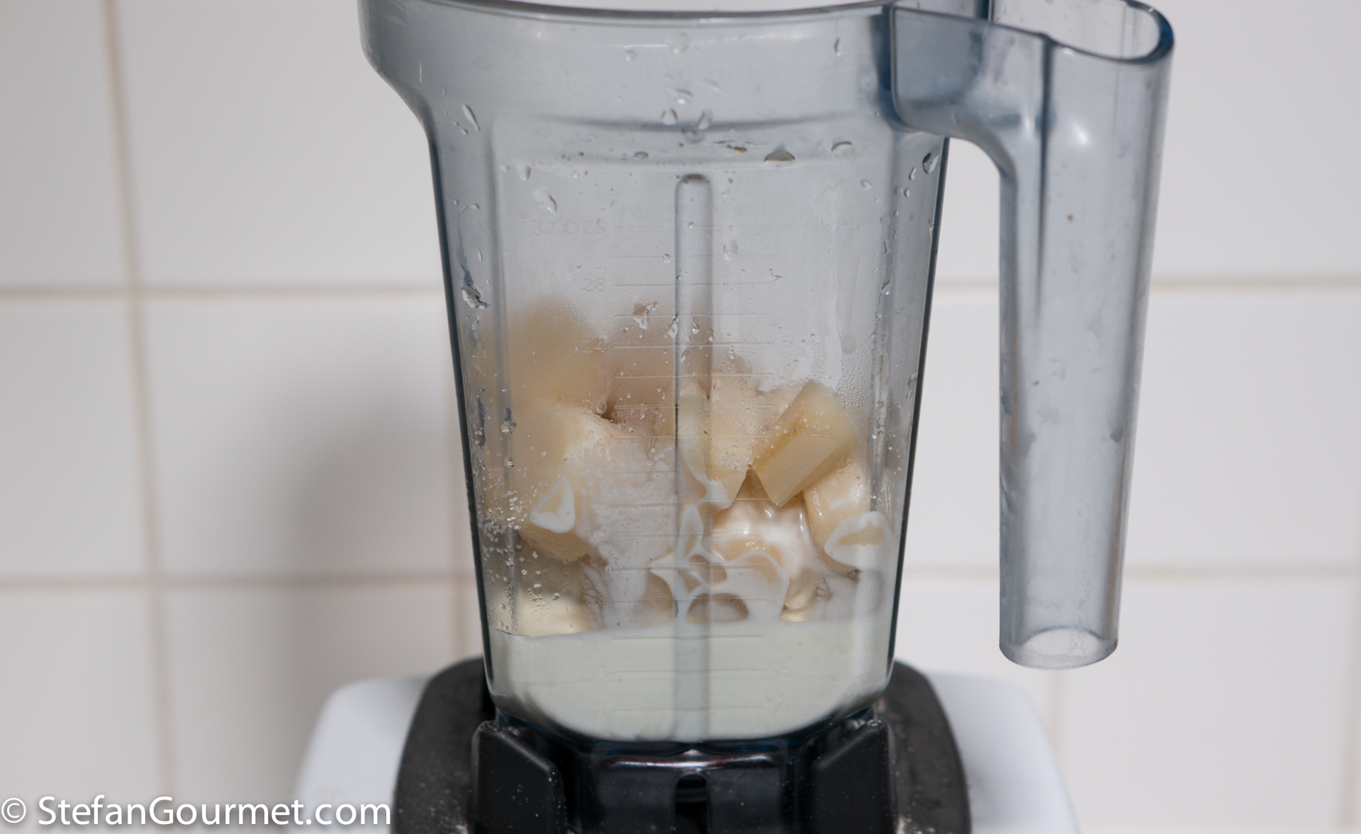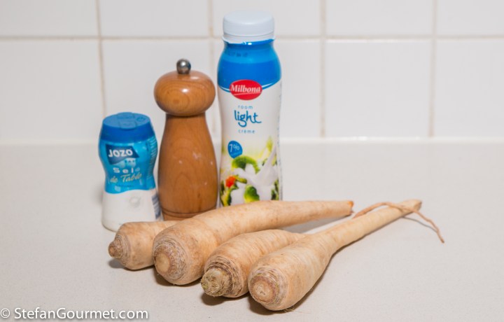 Put the cooked parsley root (together with any juices from the bag) in a blender with 120 ml of cream.