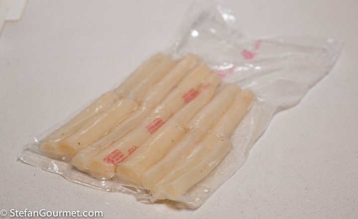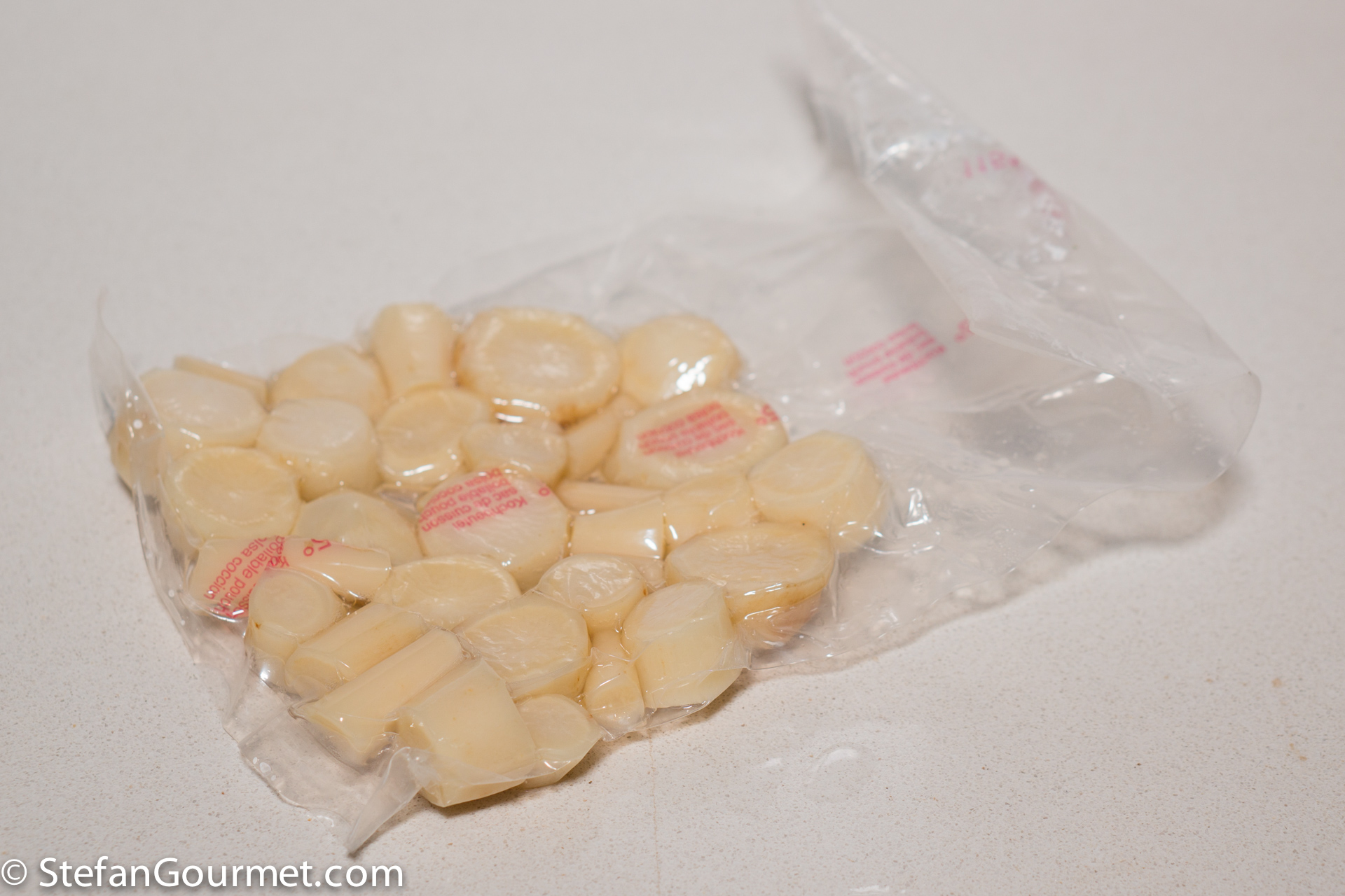 For the salsify, wash and peel the salsify and cut into 10 cm (4 inch) lengths. You can find more details about this procedure in this post. Make sure to wear gloves to prevent staining your hands.