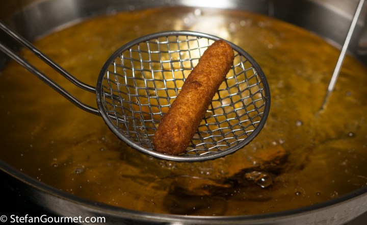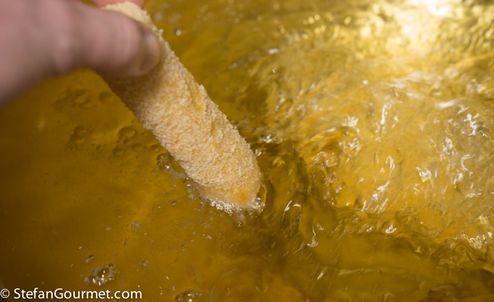 Deep fry the breaded salsify in vegetable oil at 180C/350F…