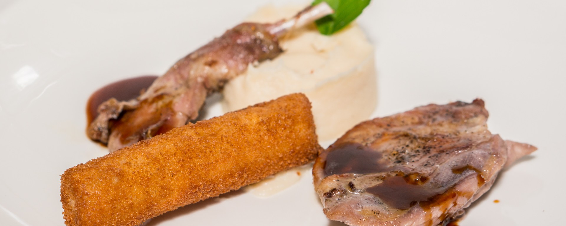 Partridge Sous-Vide with Its Own Jus, Deep Fried Salsify, and Parsley Root Puree