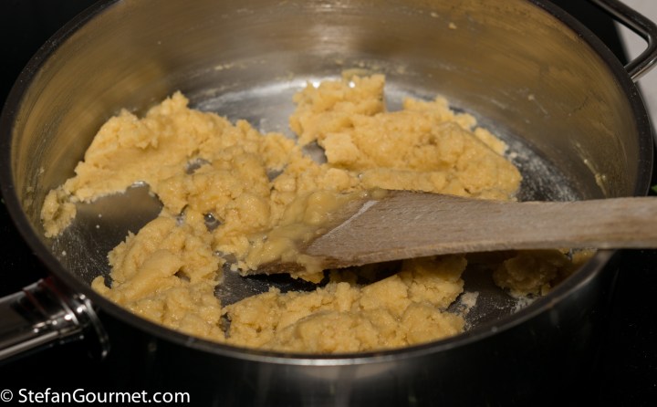 Keep whisking until the ragoût is thick. A thicker ragoût will make it easier to shape the croquettes later on. Turn off the heat.
