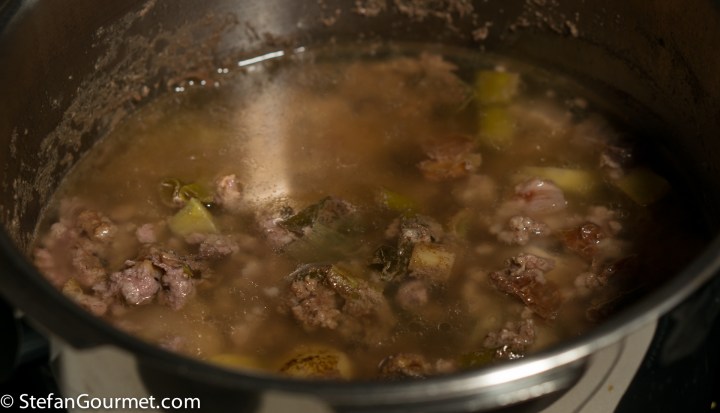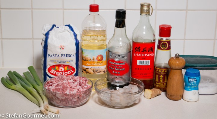 This is the first of a series of dishes that we really enjoyed in Taiwan and I wanted to recreate at home: dumplings that have soup in them, that will burst open in your mouth as you eat them. They are quite a bit of work to make, but oh so worth it. The trick to getting the soup inside the dumpling is to make pork stock with plenty of gelatin and then cool it until it sets. The stock is now solid and can be added to the filling of the dumplings. When the dumpling is steamed, the soup will become liquid again. We had these a couple of times in Taiwan, and loved them every time. This homemade version is at least as good.