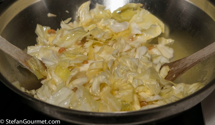 …until the cabbage is tender but still firm to the bite. Season to taste with salt and freshly ground white pepper.