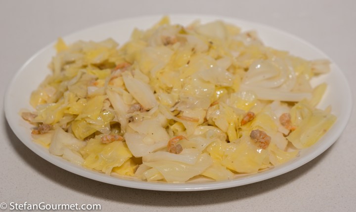 2. Another recipe to which to look forward during the holiday break! I stirfry vegetables at least 3-4 times a week as a side or even as lunch per se but, however much I love cabbage, have to admit that has rarely ended in the pan. No salted dried little prawns in the house, but a large packet of frozen ones there: perhaps just a tad less taste and more seasoning needed, but am looking forwards to piling the plate !!!