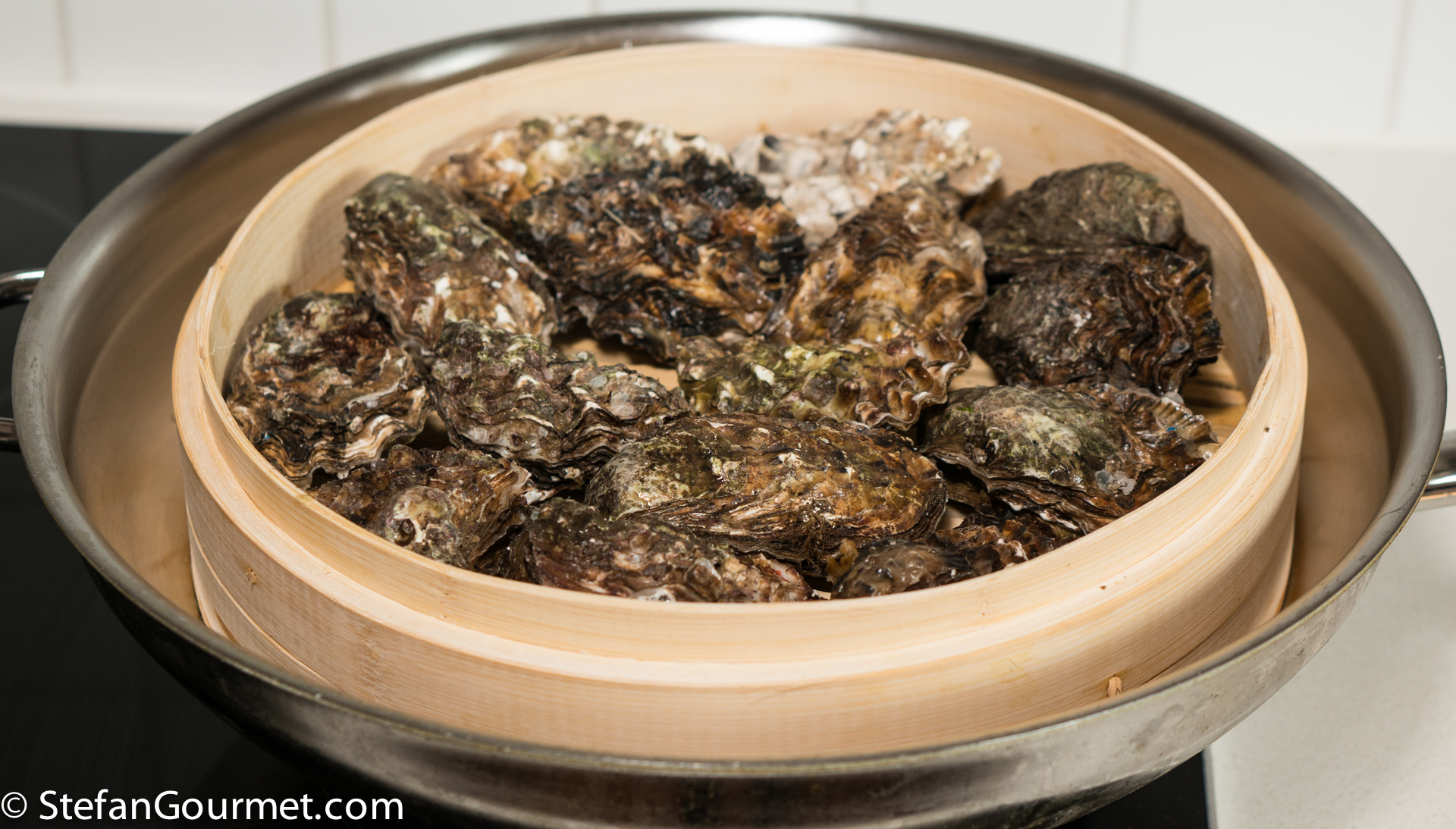 If using fresh oysters, arrange them in a steaming basket over simmering water.