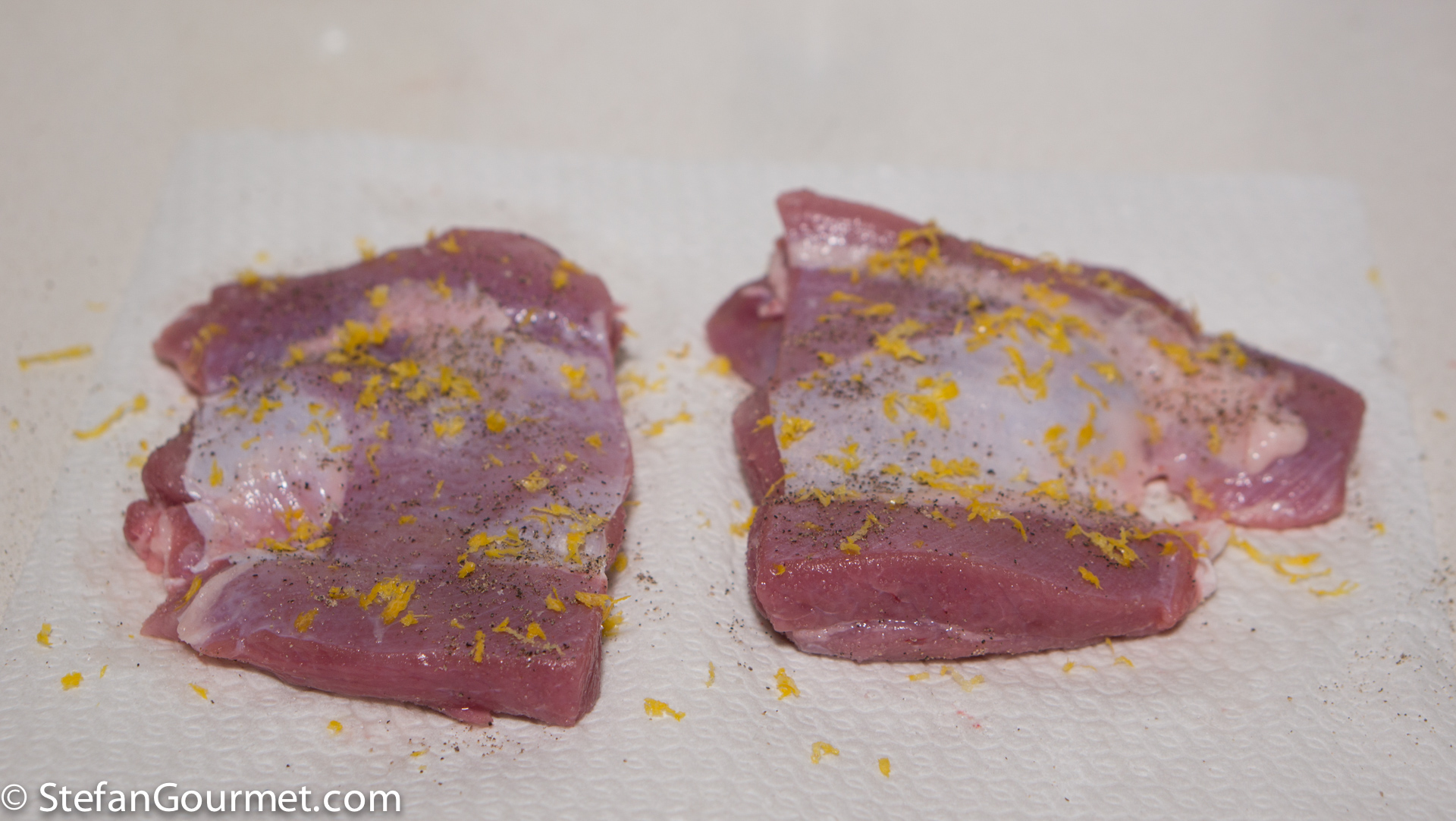 Season the turkey with salt and freshly ground black pepper on all sides and sprinkle with grated lemon zest.