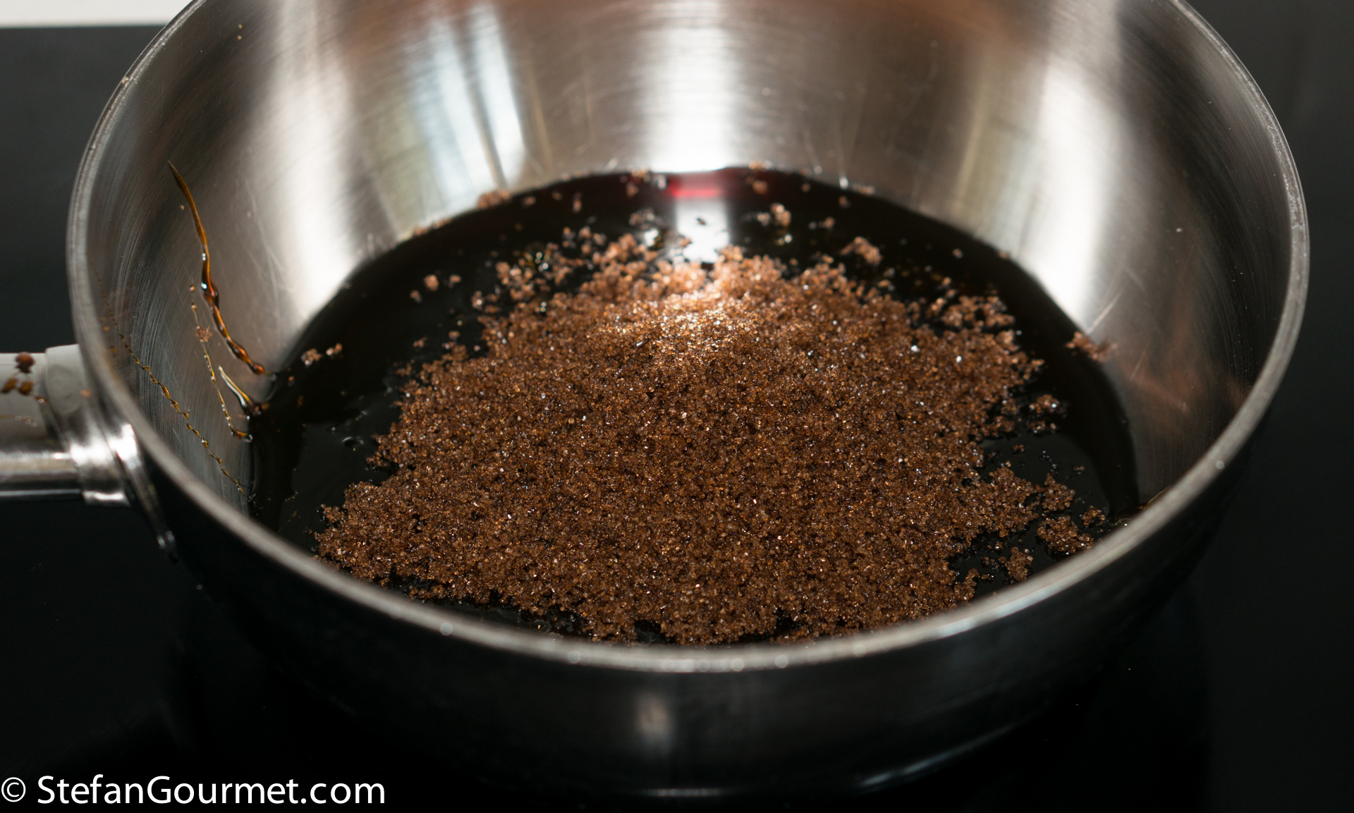 Combine the brown sugar and sugarbeet syrup in a saucepan.