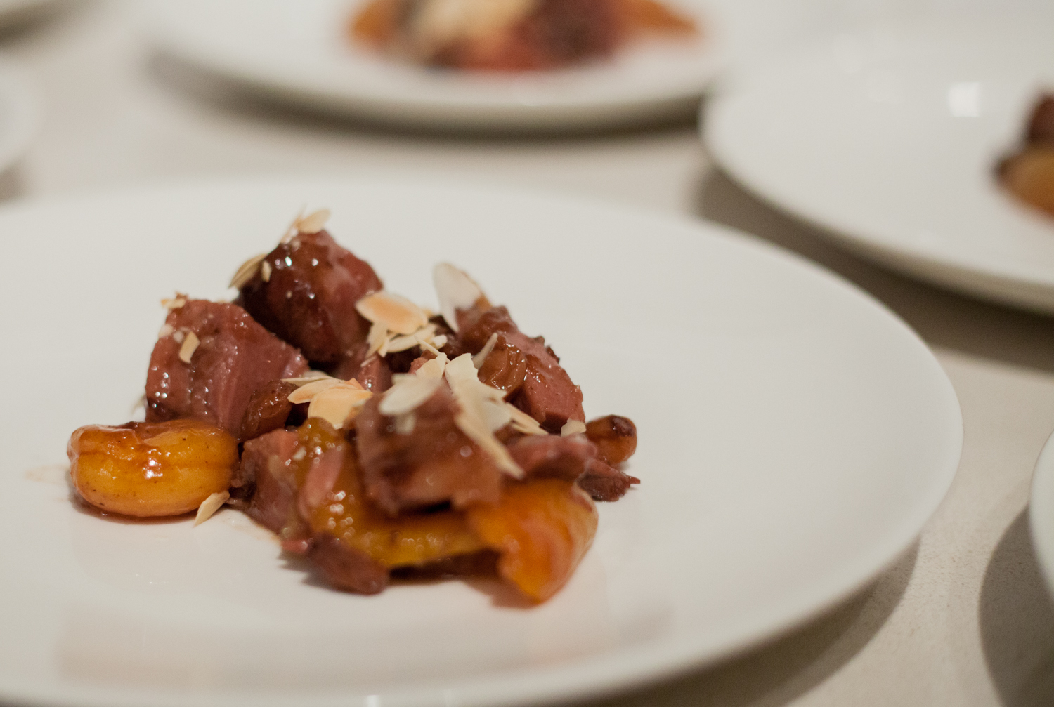 When I asked him about it, he confirmed that the wine and wine pairings should be the centerpiece of the evening. If that is the case, my advice would be to choose the wine first and then choose a dish that will work well with it. It is much easier to pick a dish that will work well with a certain bottle of wine, than to pick a wine that will work well with a specific dish. This is because you can more easily tweak the dish than you can tweak the wine. For example if the wine needs more freshness in the dish, you could add lemon zest or parsley or capers. If the wine has strong tannins, you can brown the meat more.