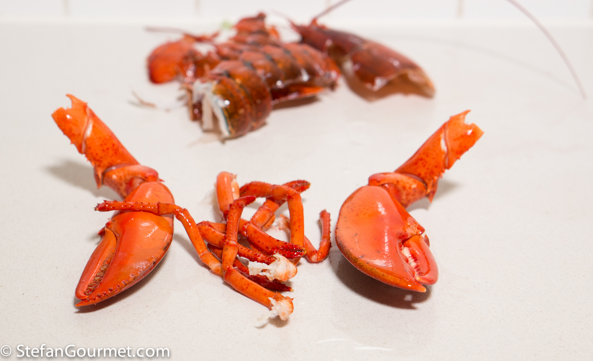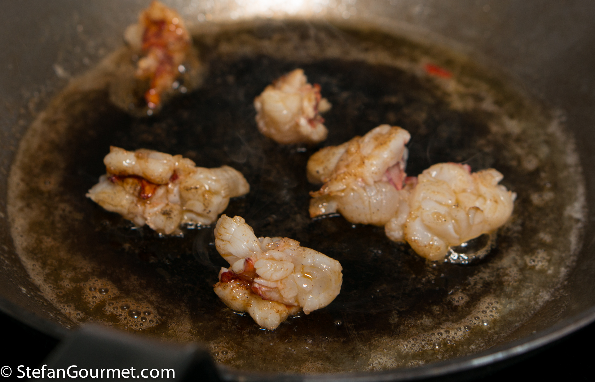 4. Your method of blanching the lobster is EXACTLY the way a chef in Arizona talked about doing in his restaurant. He said that the raw shells will impart even more flavour to the stock than entirely cooked shells. Where do you get lobster from? Our lobster comes from Eastern Canada but it is still quite expensive. I think my husband would love this dish, particularly the lobster bisque sauce.